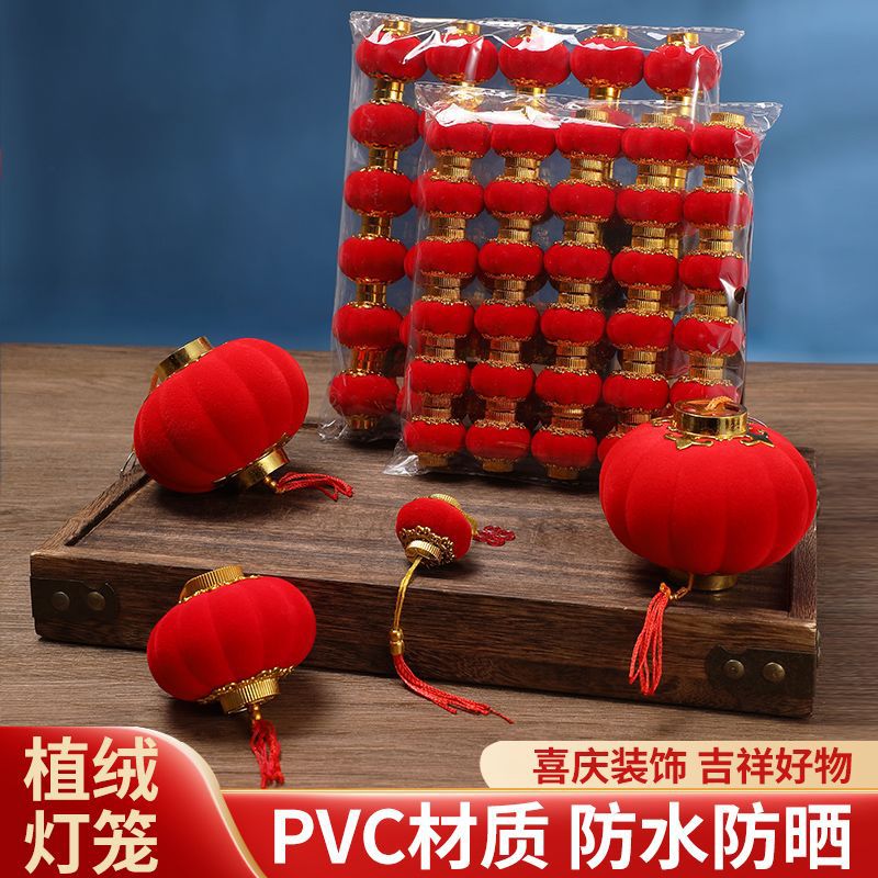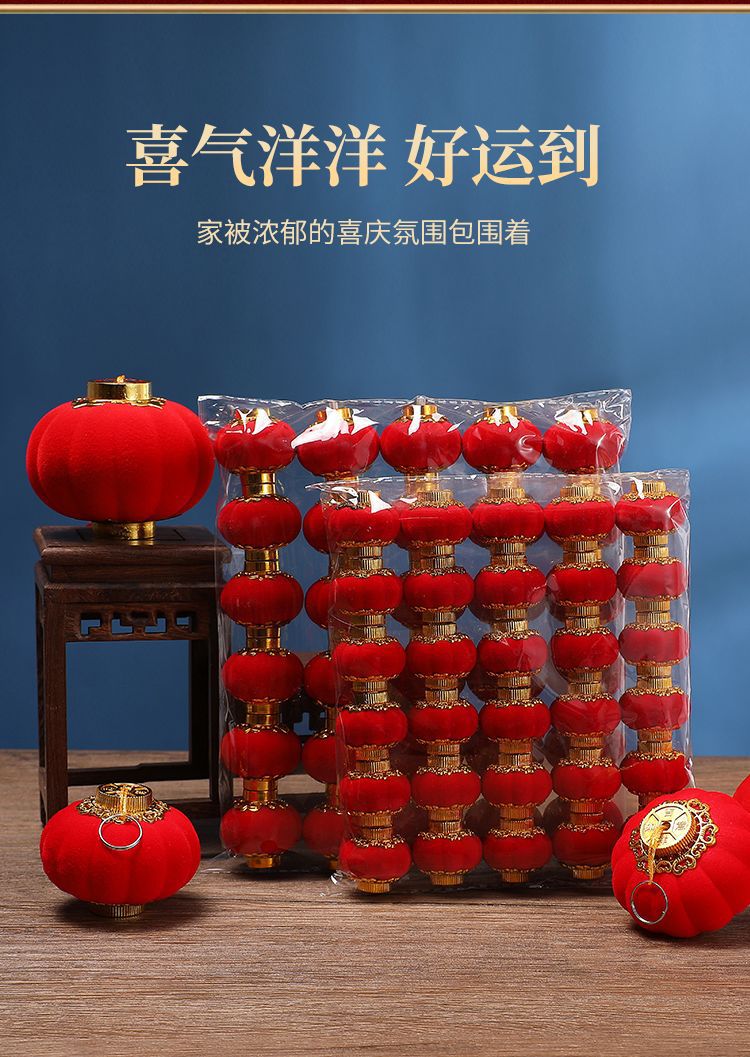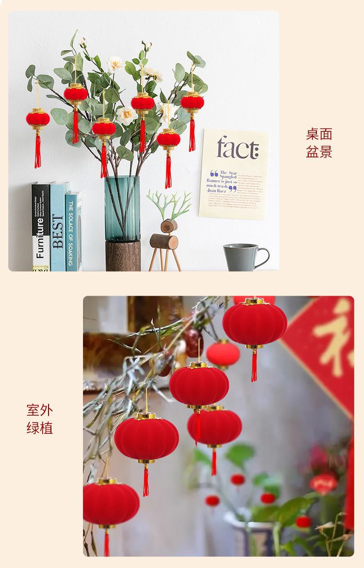 新年植绒小灯笼盆景挂饰挂件春节户外装饰室内装饰结婚场景布置