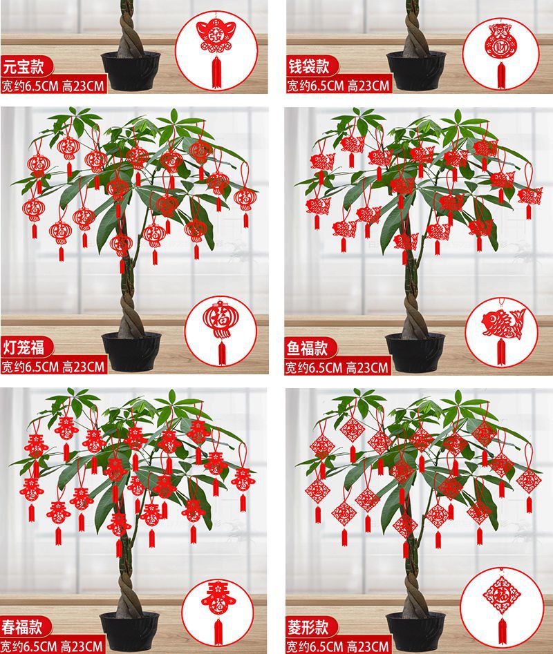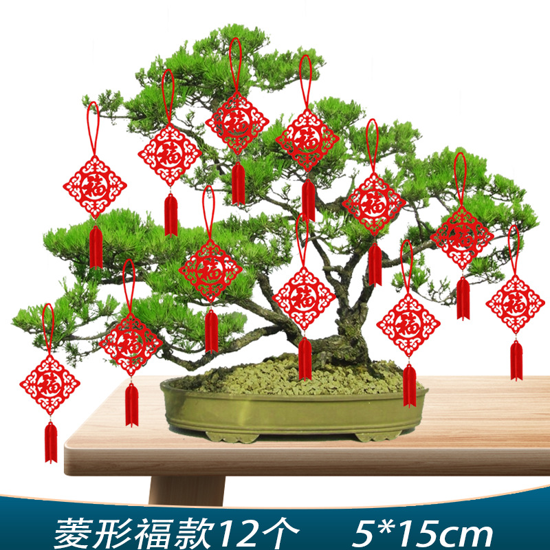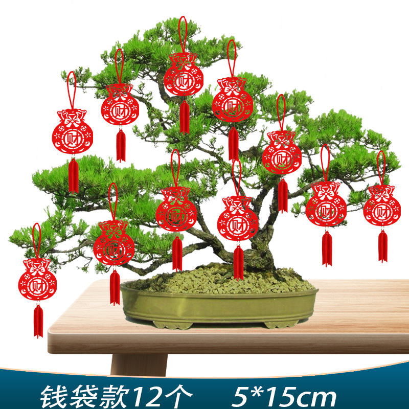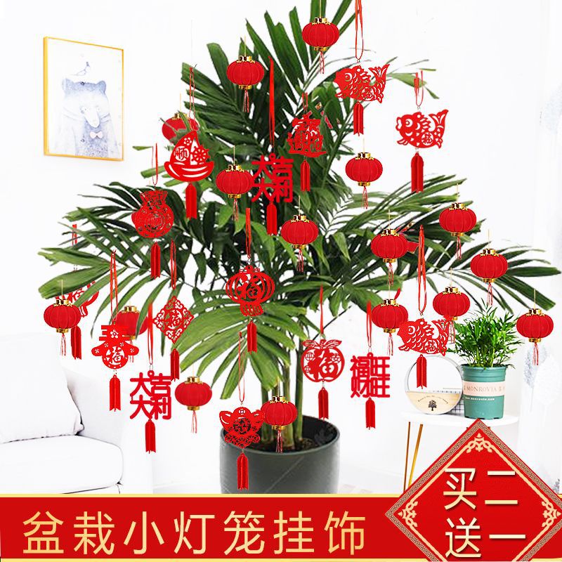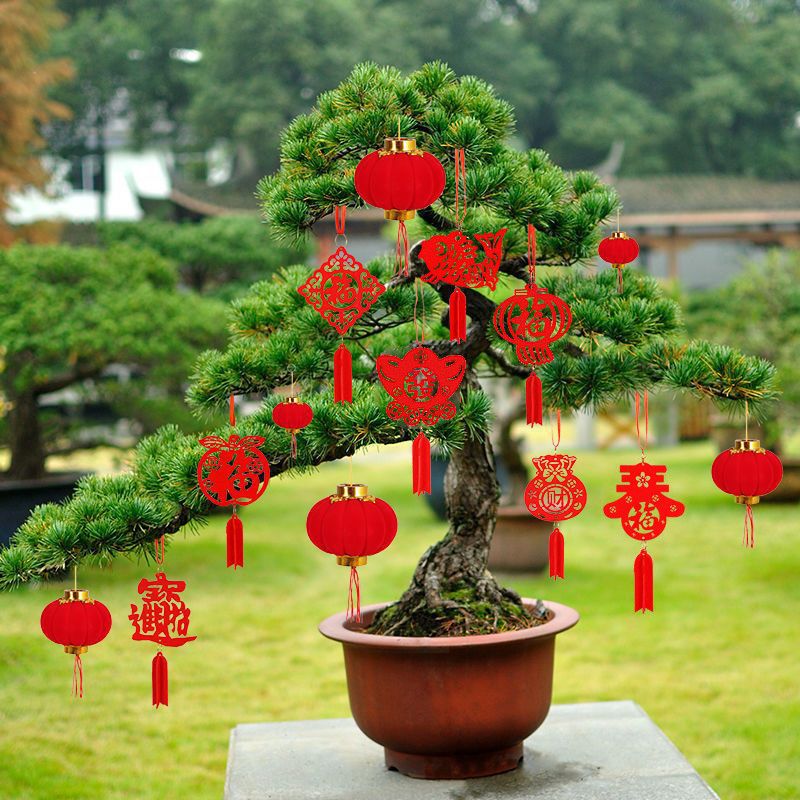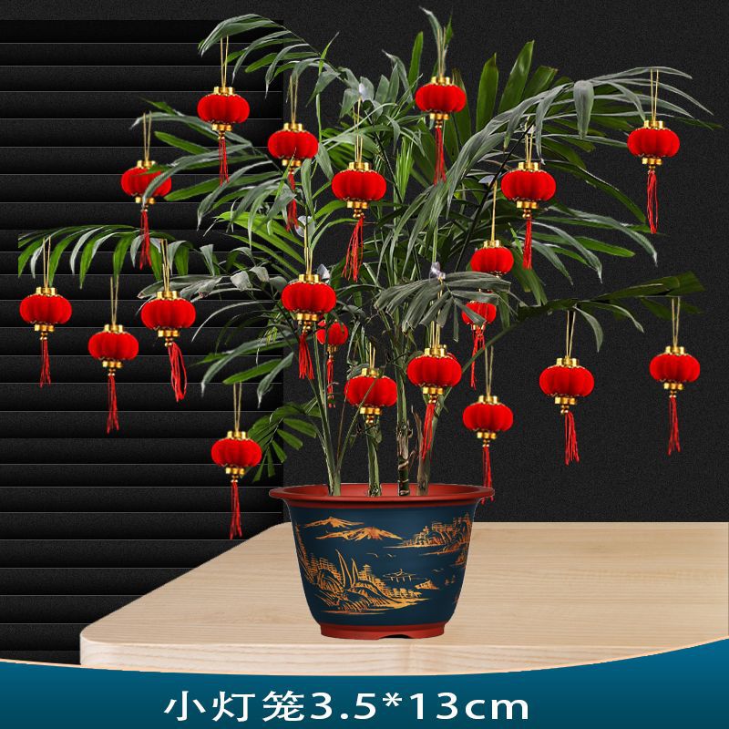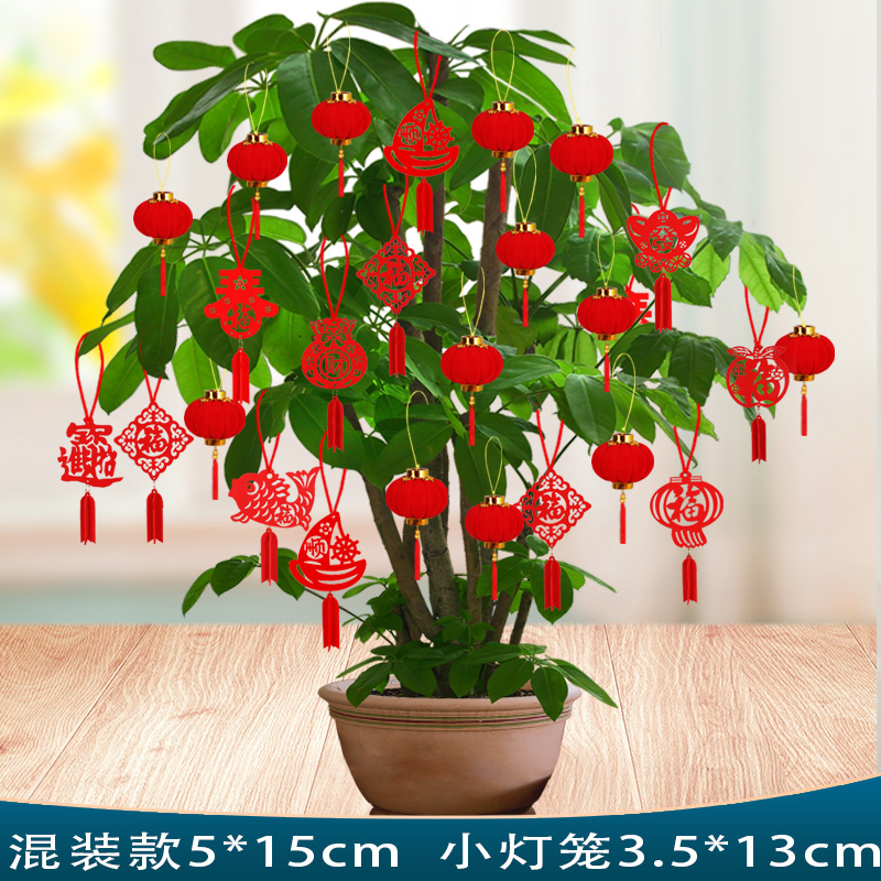 新年元旦盆景小灯笼挂饰室内户外植物装饰用品无纺布挂件场景布置