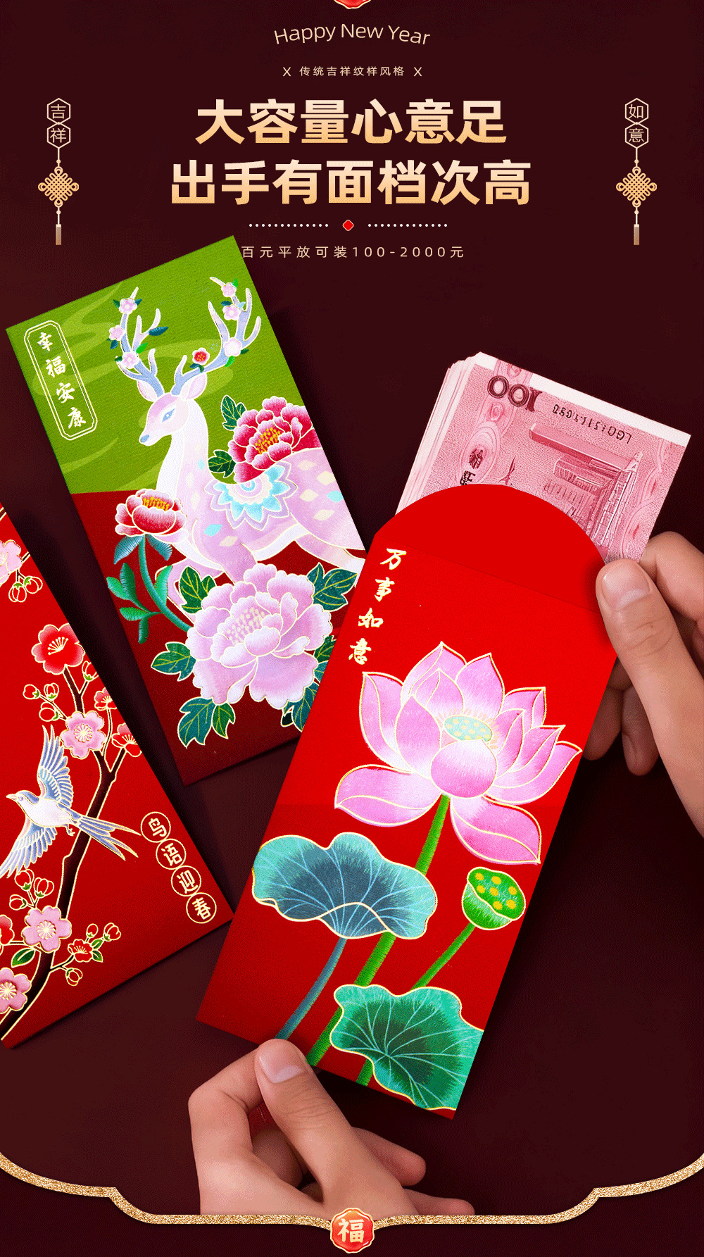 2026新款马年过年红包万事如意千元新年压岁钱封包春节拜年利是封