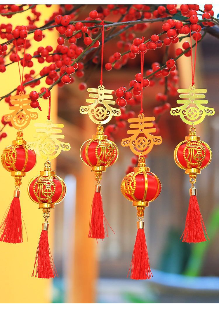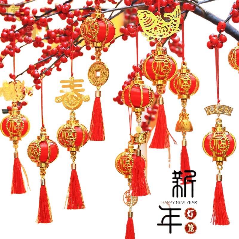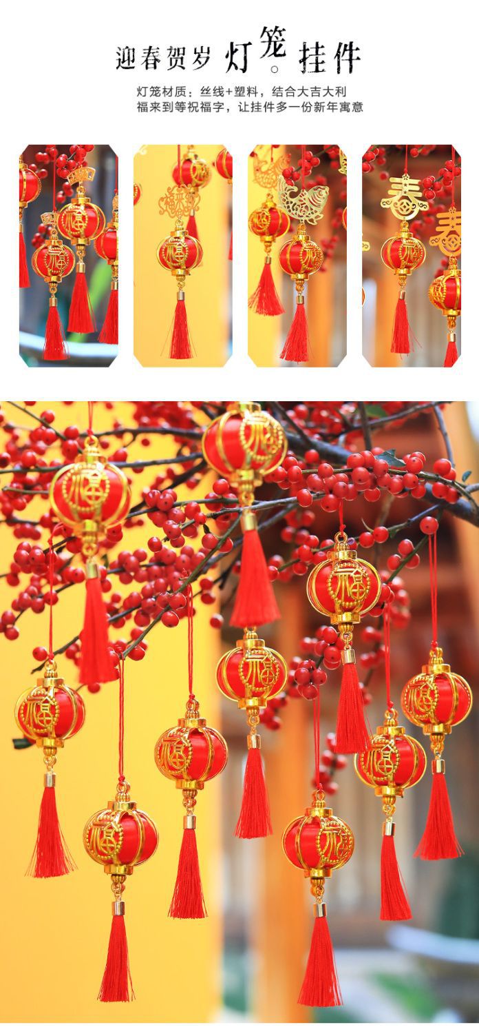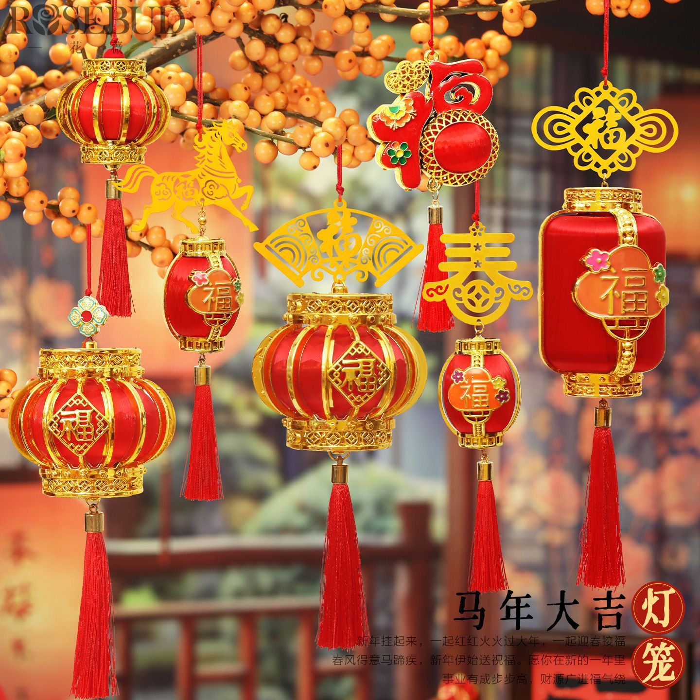 新年春节小灯笼挂件玄关挂饰盆景马年商场公司年会元旦布置灯笼