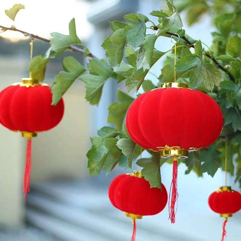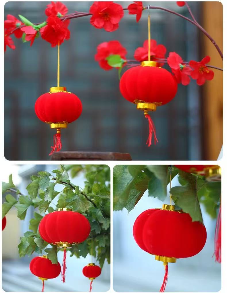 挂件挂饰灯笼结婚红灯笼植绒球树上装饰新年室内户外布置喜庆盆景