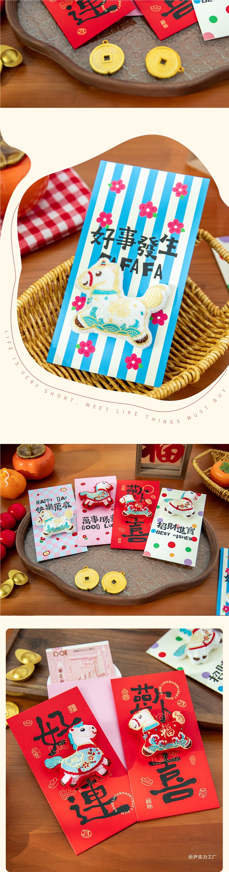 立体刺绣小马红包袋2026年马年利是封个性创意新年春节压岁钱封包