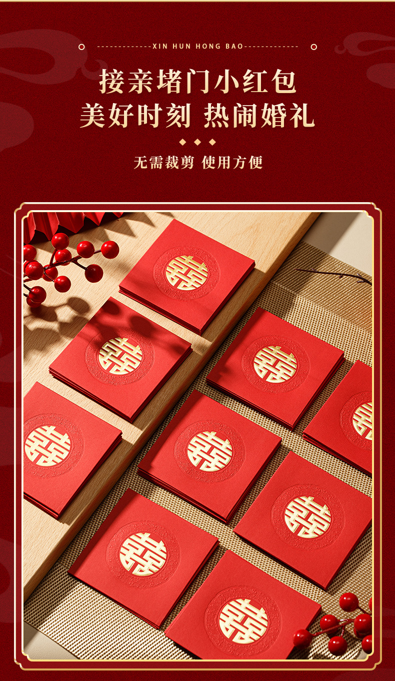 红色结婚喜包堵门新年接亲喜字红包利是封马年改口红封包囍喜庆