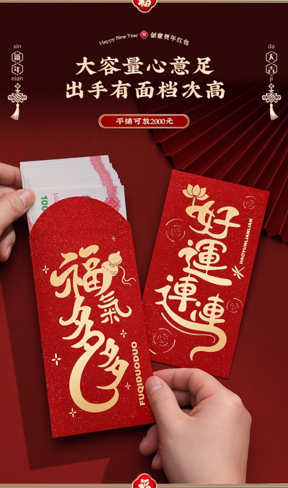新年红包2026新款马年过年万事如意千元压岁钱封包春节拜年利是封