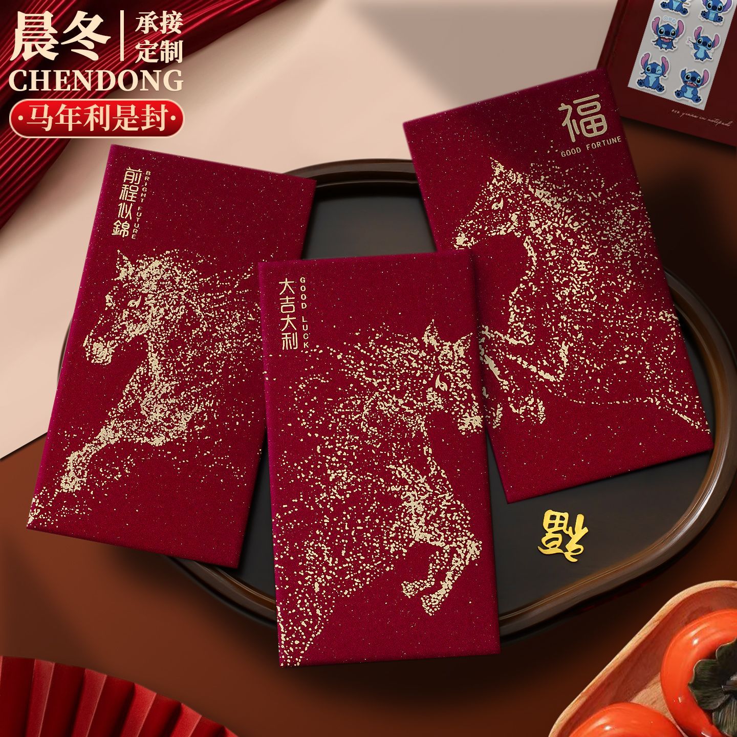 创意压岁红封包酒红轻奢新年红包袋2026年马年通用利是封高端