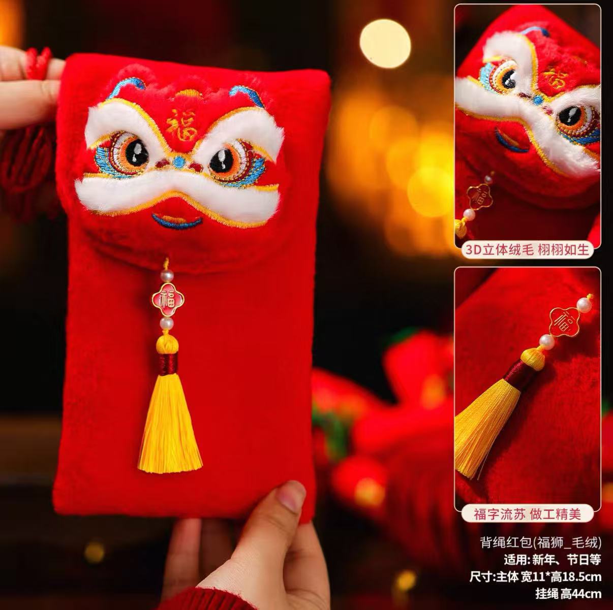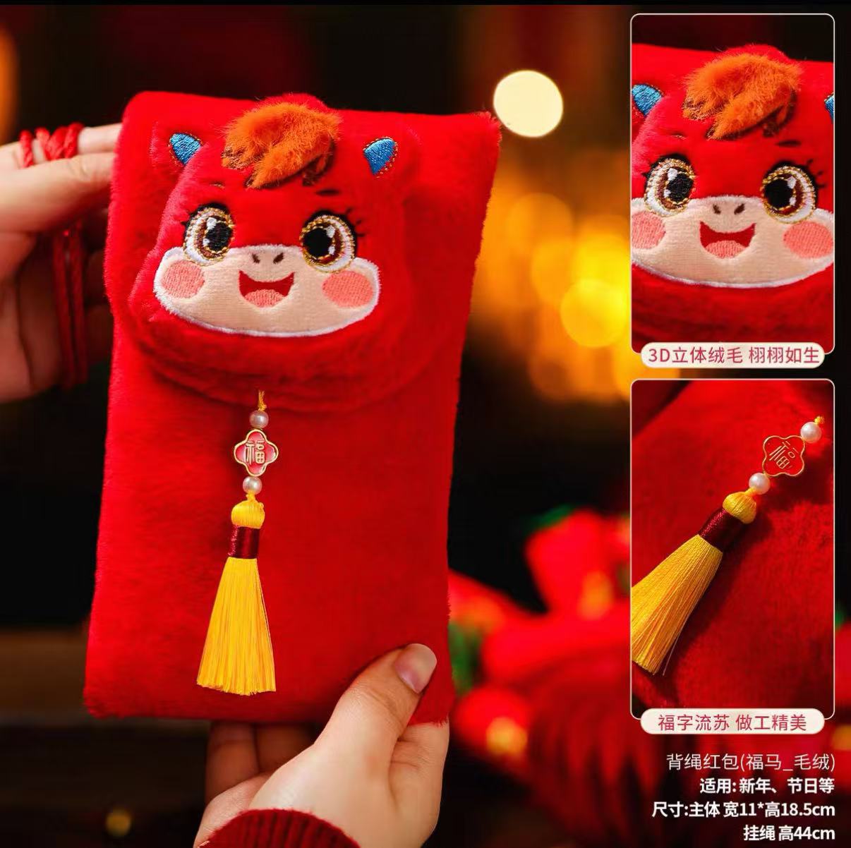 2026马年新款生肖毛绒背绳红包袋春节过年儿童万元压岁钱新年封包