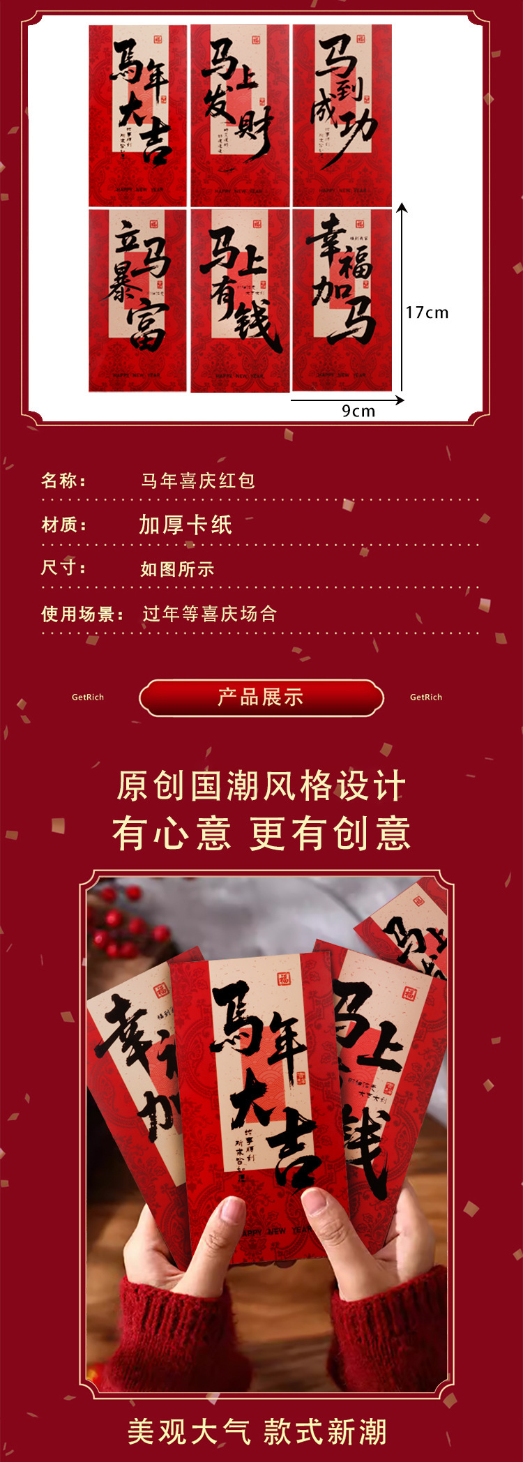 2026马年红包新款高档封包新年利是封个性创意过年压岁包中式书法