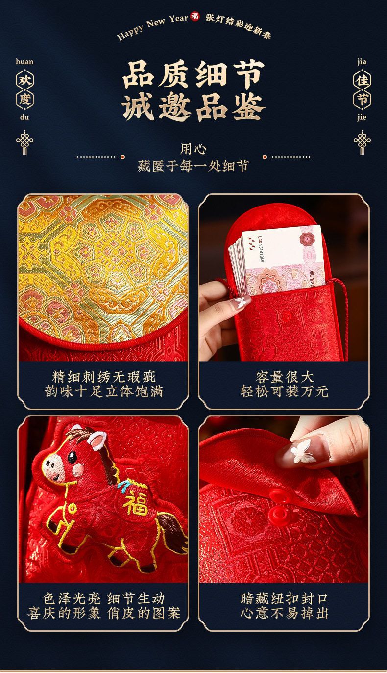 新款封包儿童新年布艺红包袋生肖马年利是压岁钱2026万元过年春节