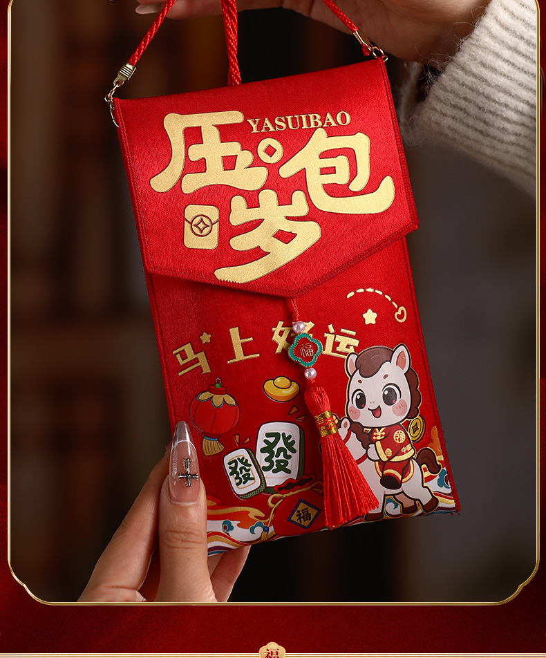 马年封包2026新年新款红包袋卡通布艺烫画春节创意过年利是封批货