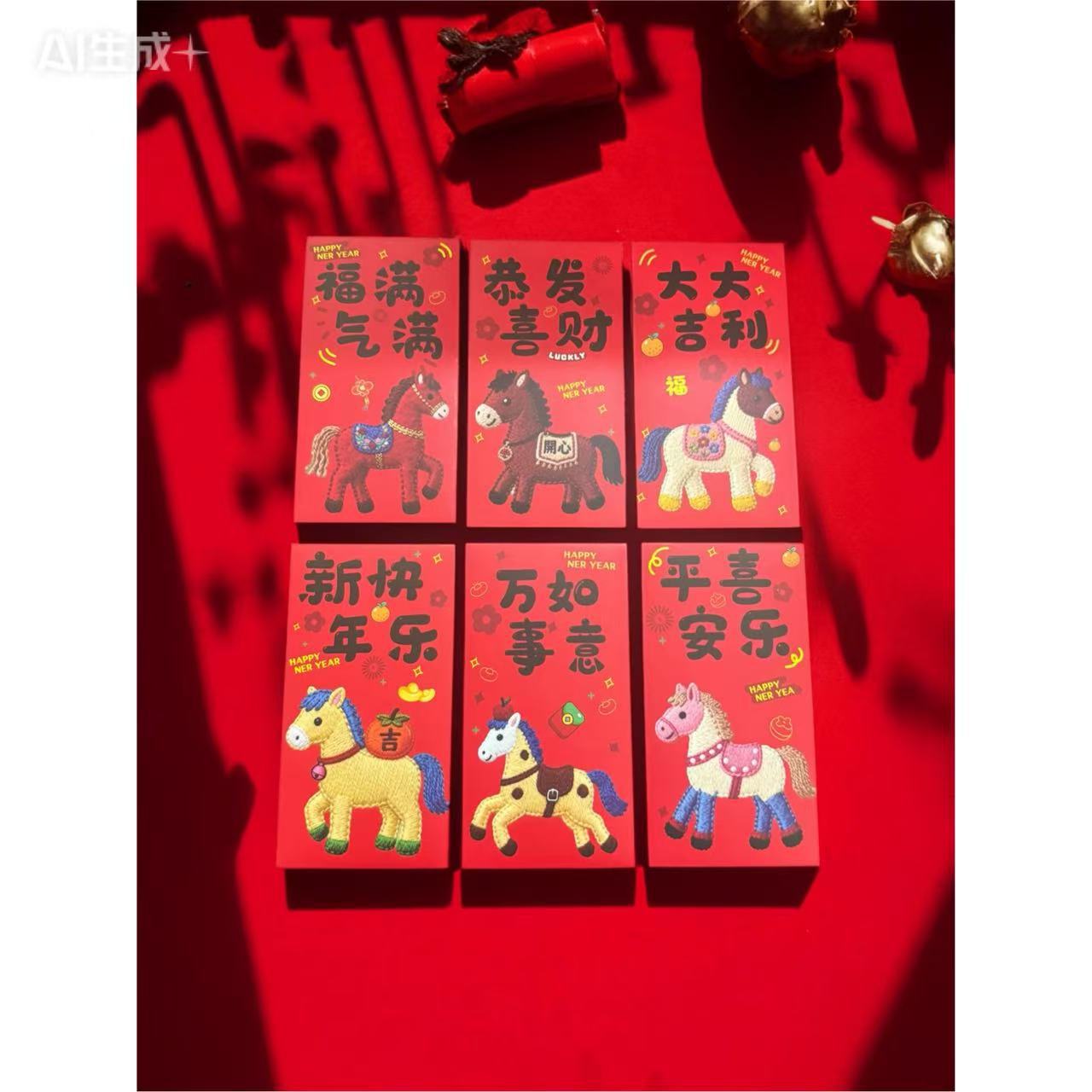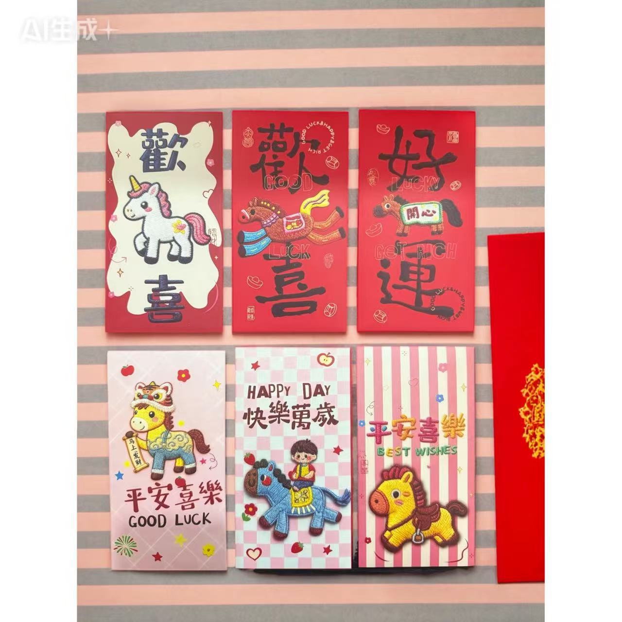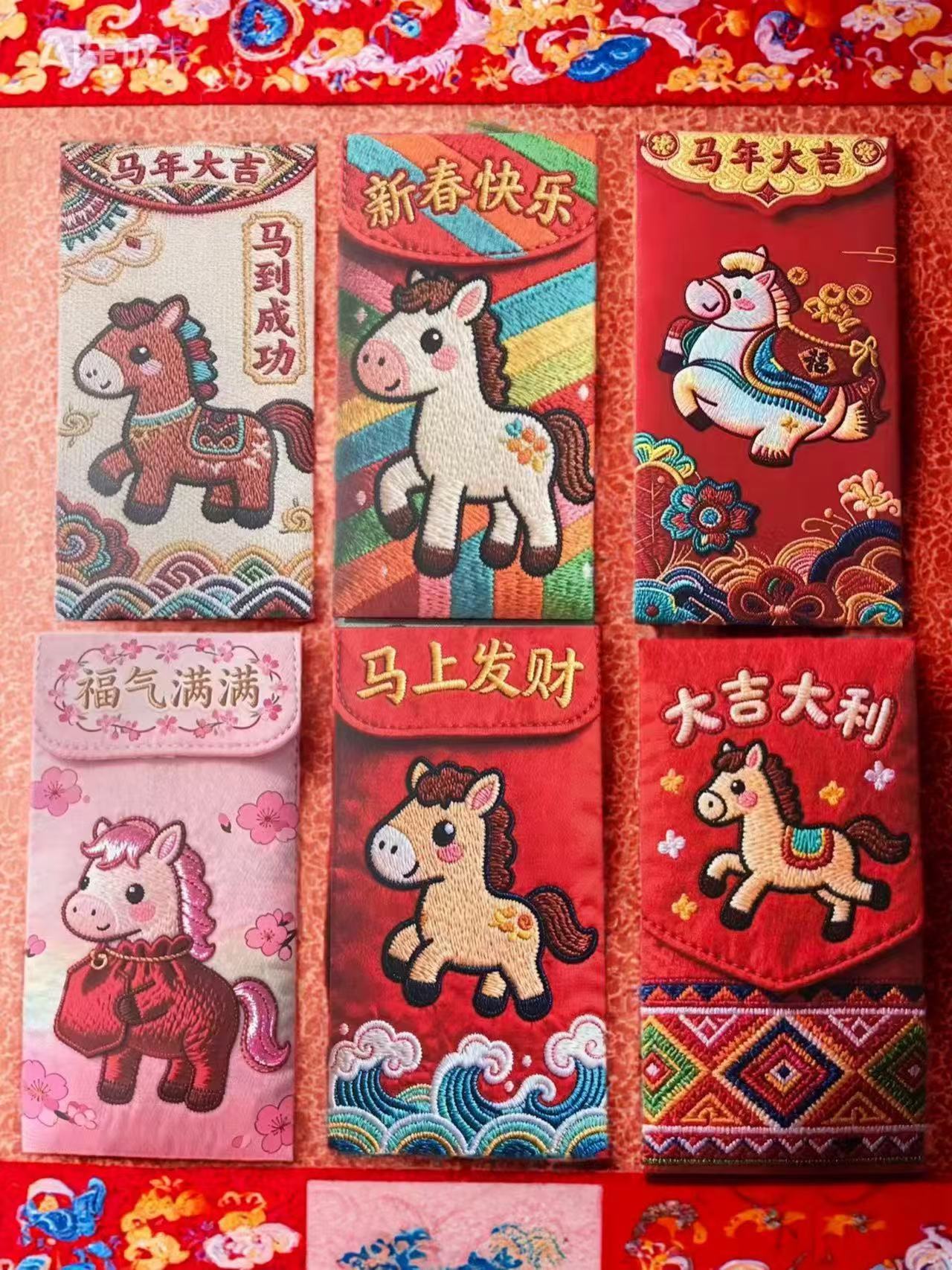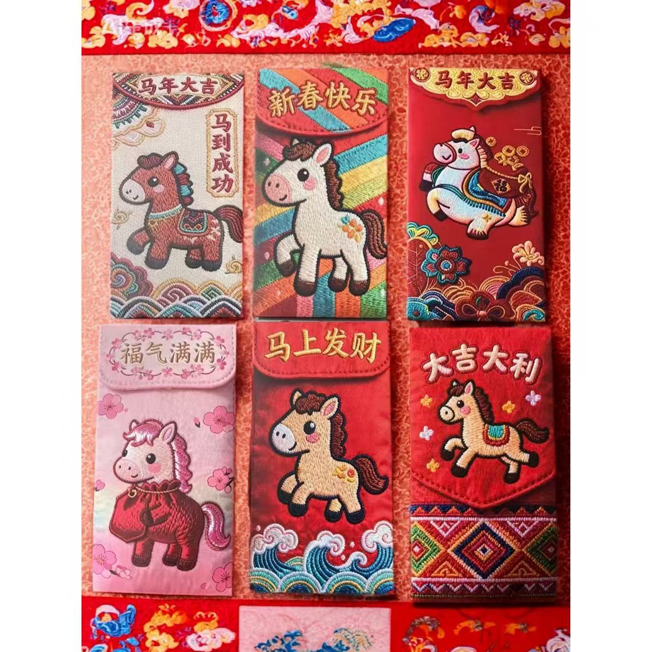 卡通福马萌马系列红包 平面刺绣风格 可爱卡通春节红包马年利是封