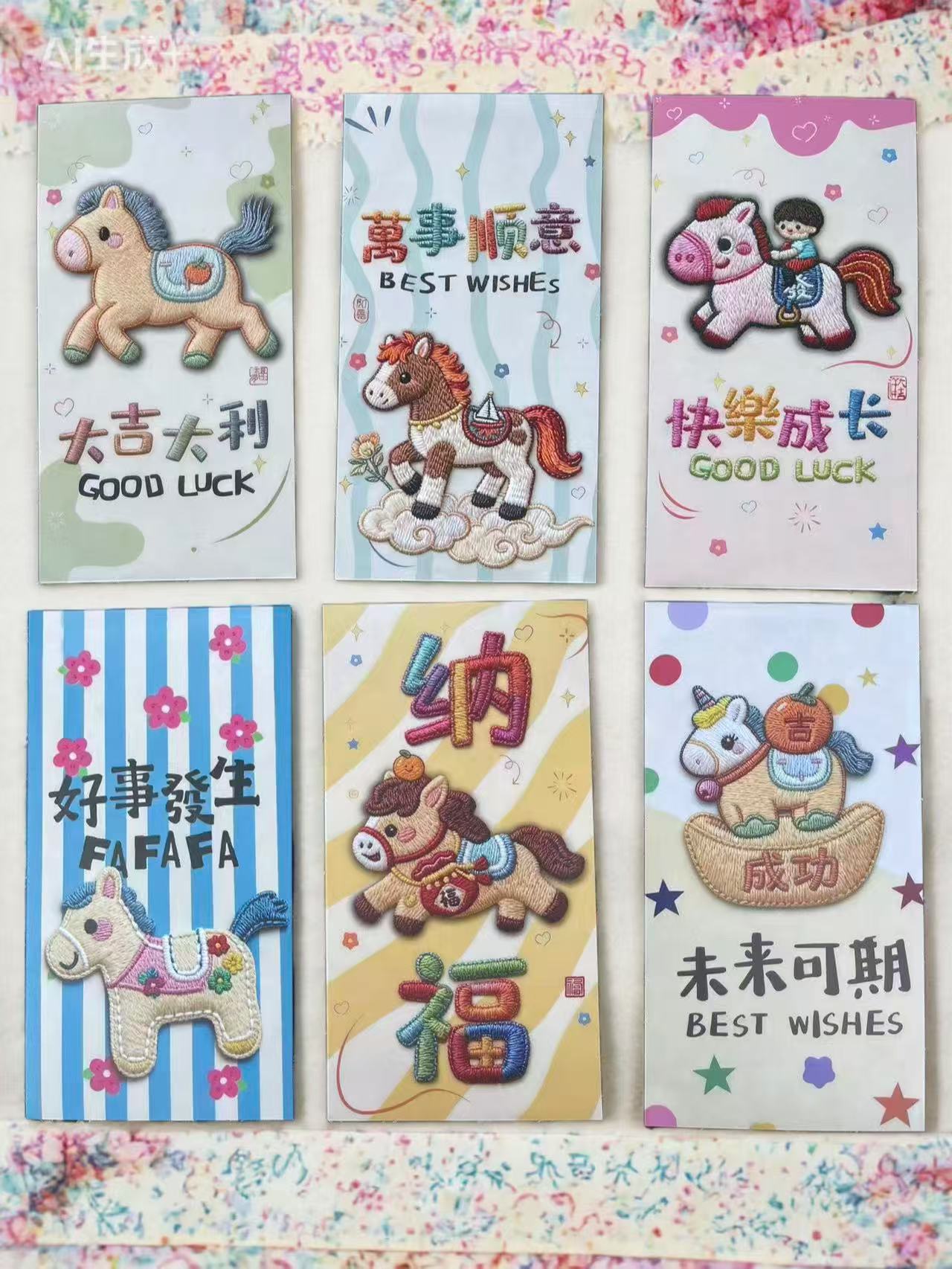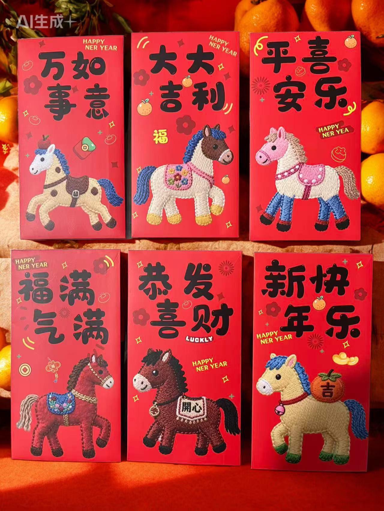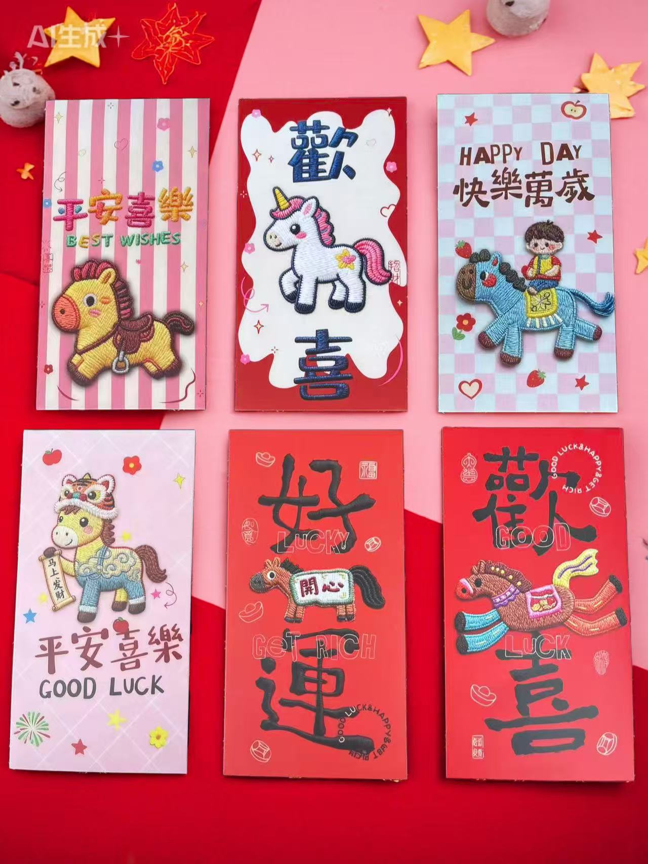 卡通福马萌马系列红包 平面刺绣风格 可爱卡通春节红包马年利是封