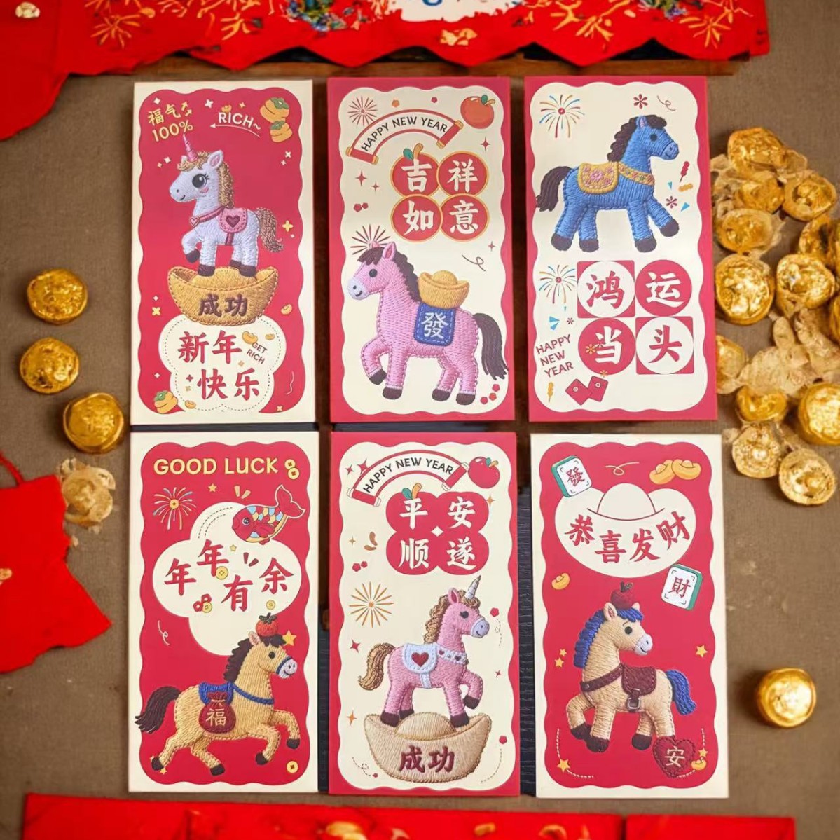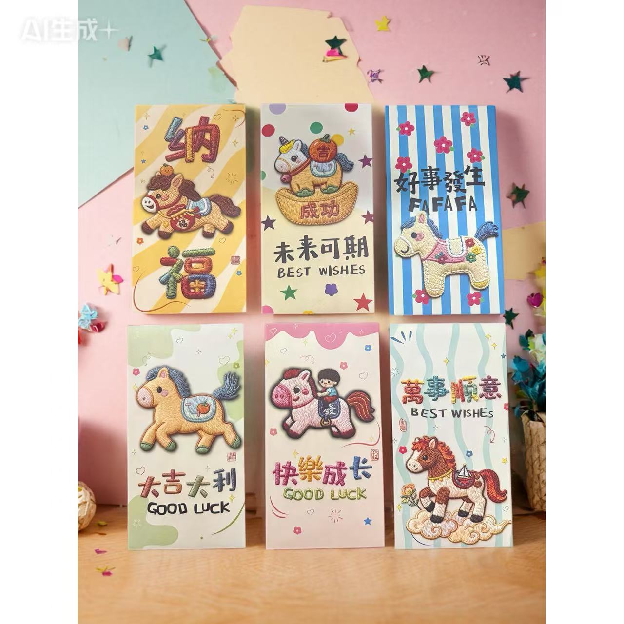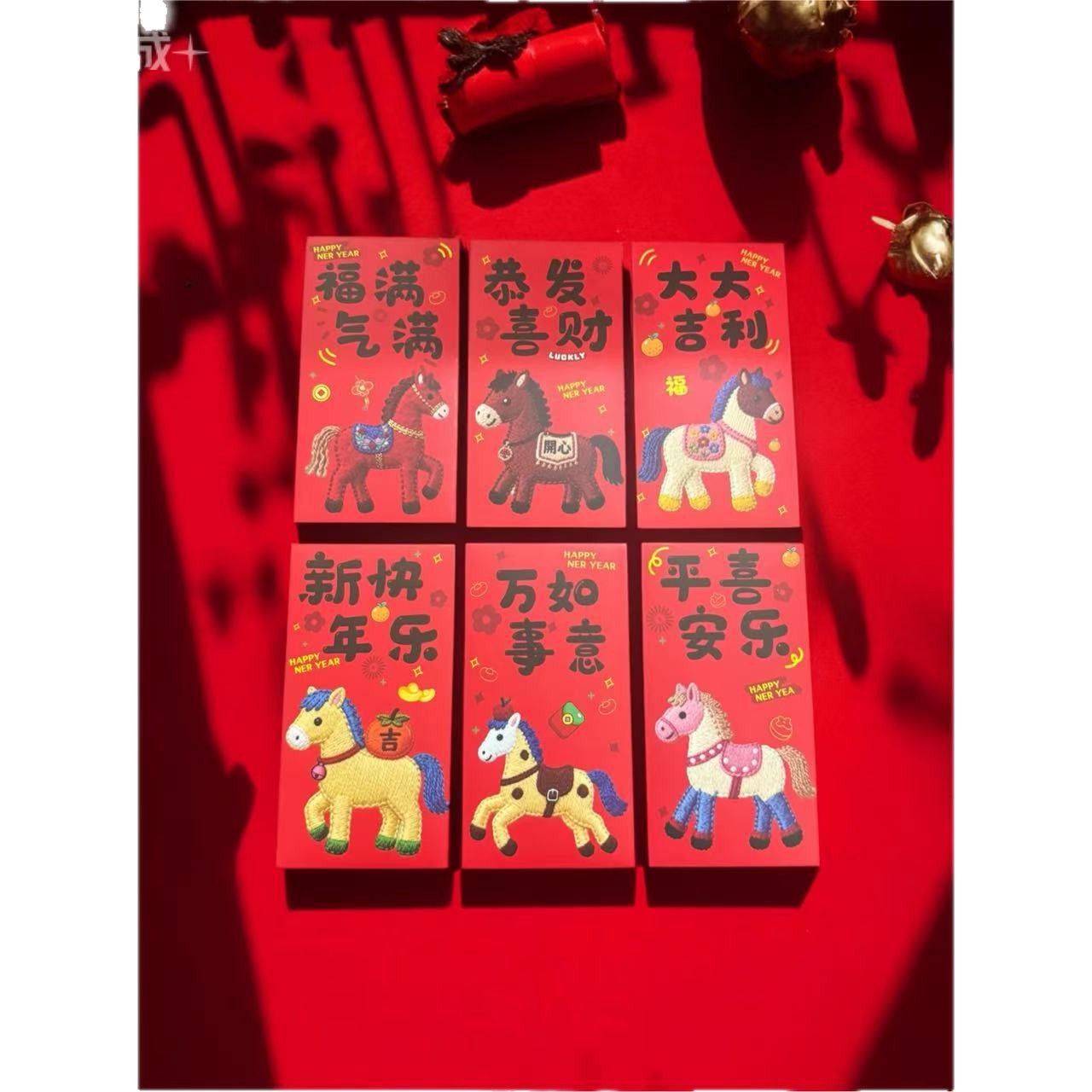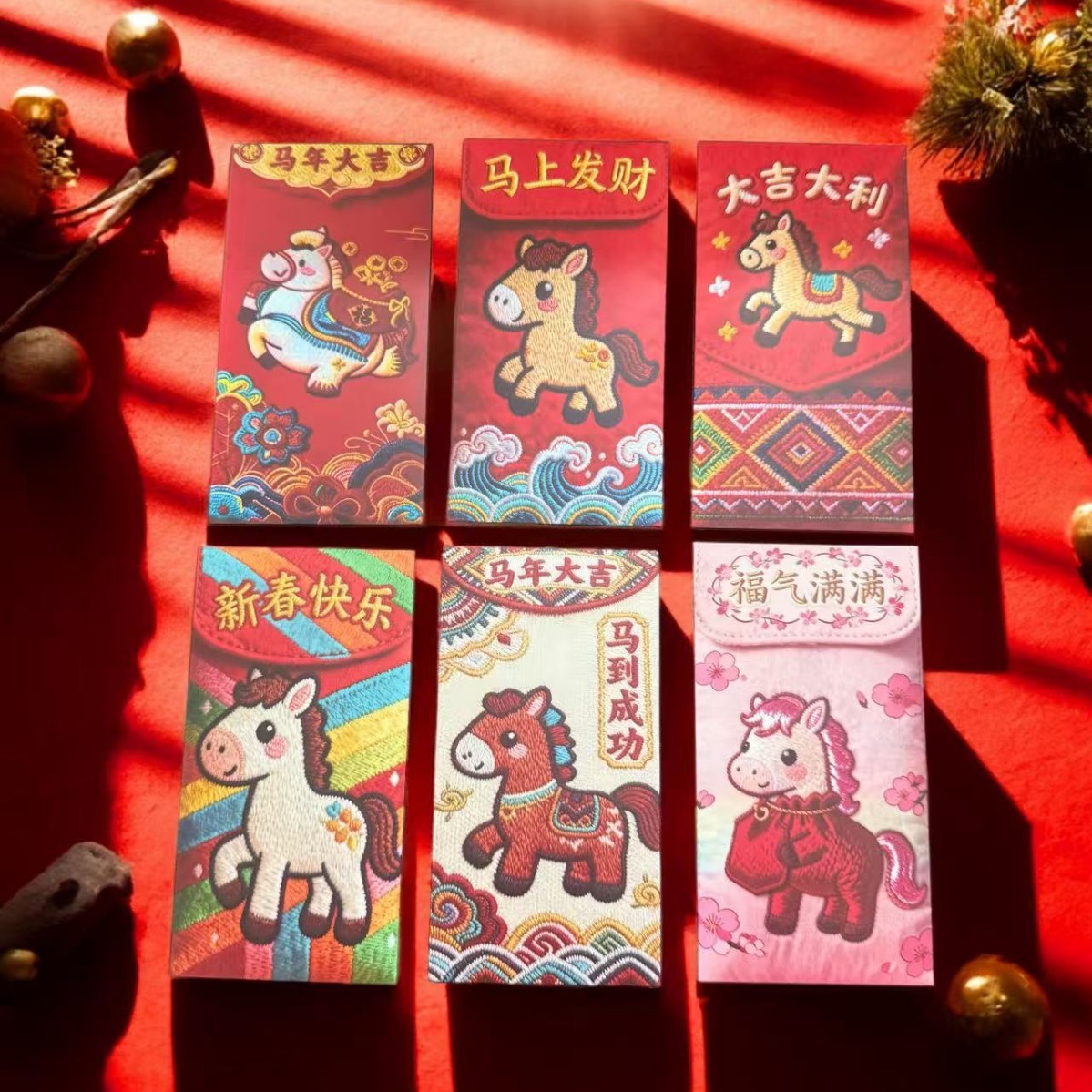 卡通福马萌马系列红包 平面刺绣风格 可爱卡通春节红包马年利是封