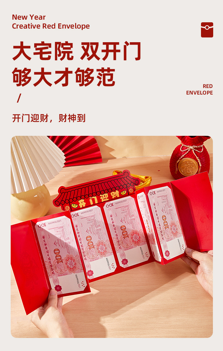 2026新年开门来财红包国潮创意个性利是封马年过春节拜年压岁包袋