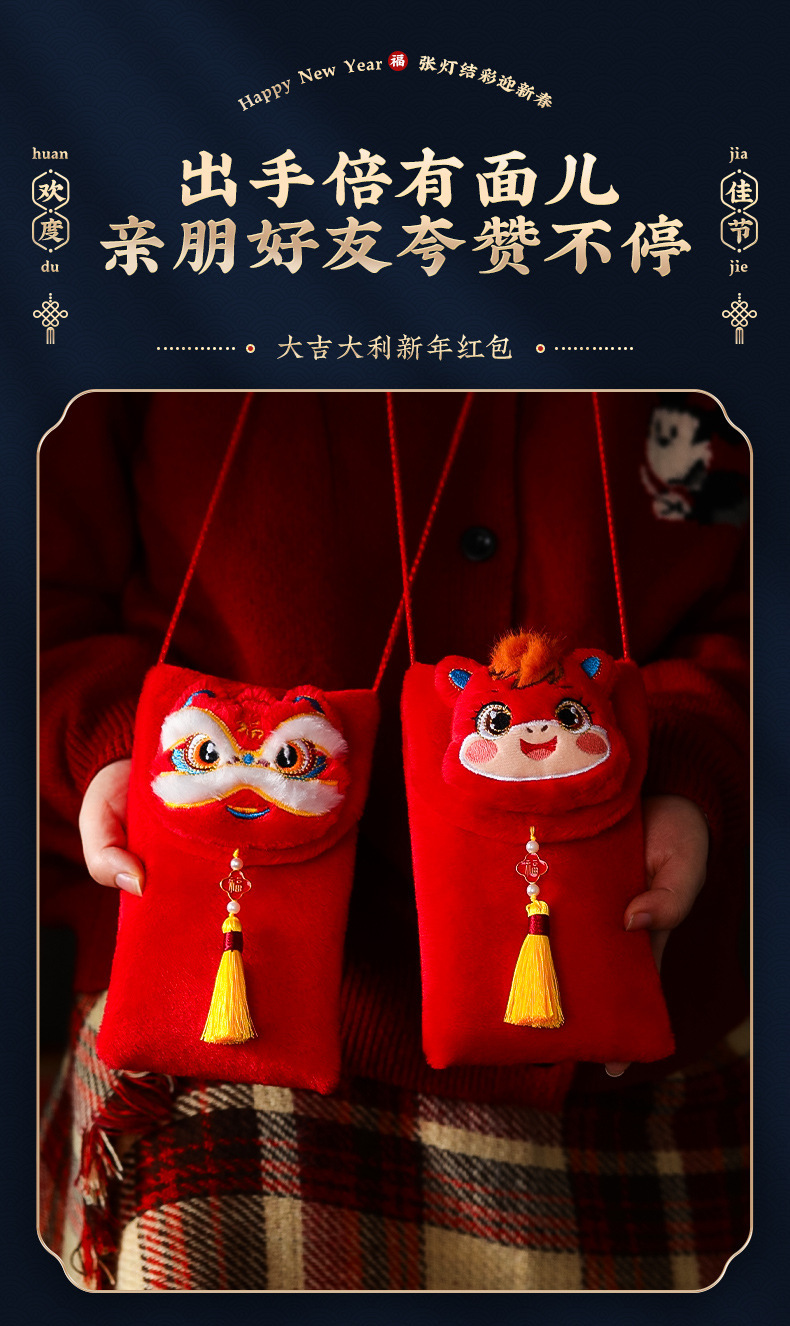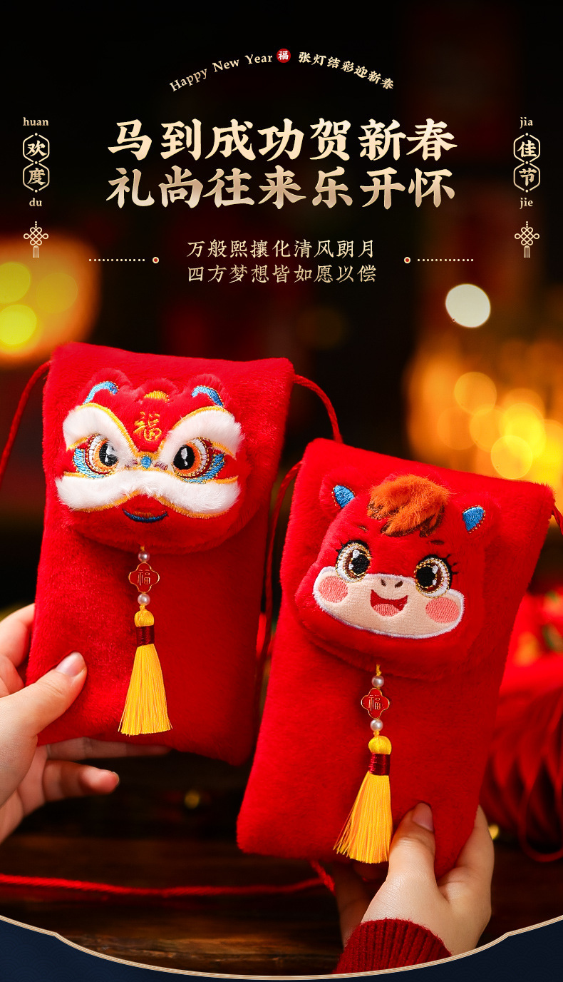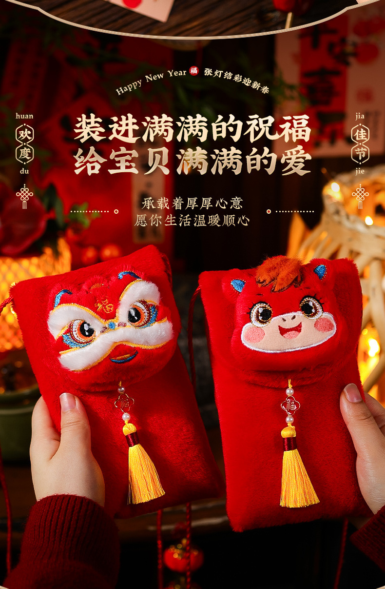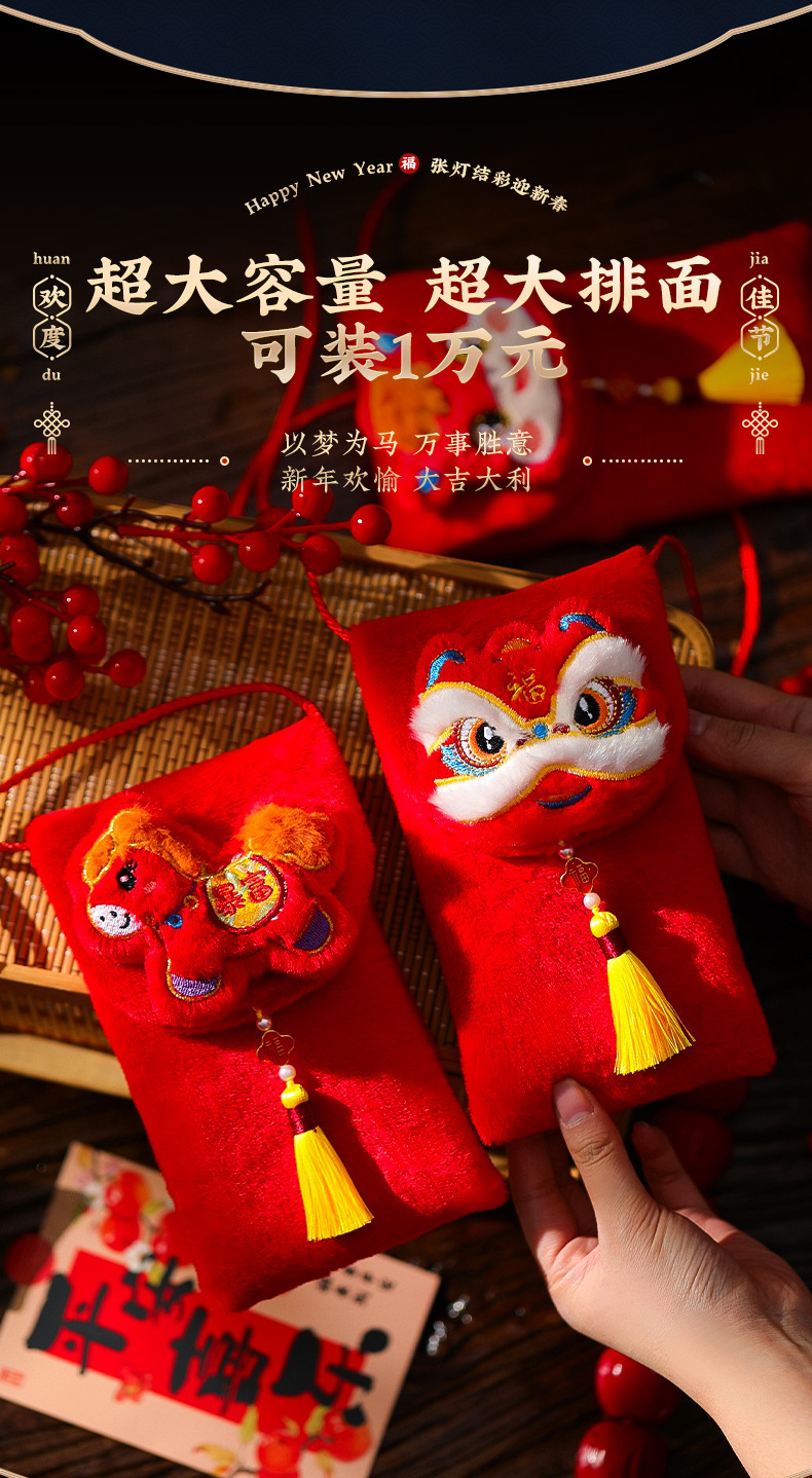 马年布艺红包袋2026新款新年毛绒利是封包春节红封包通用过年