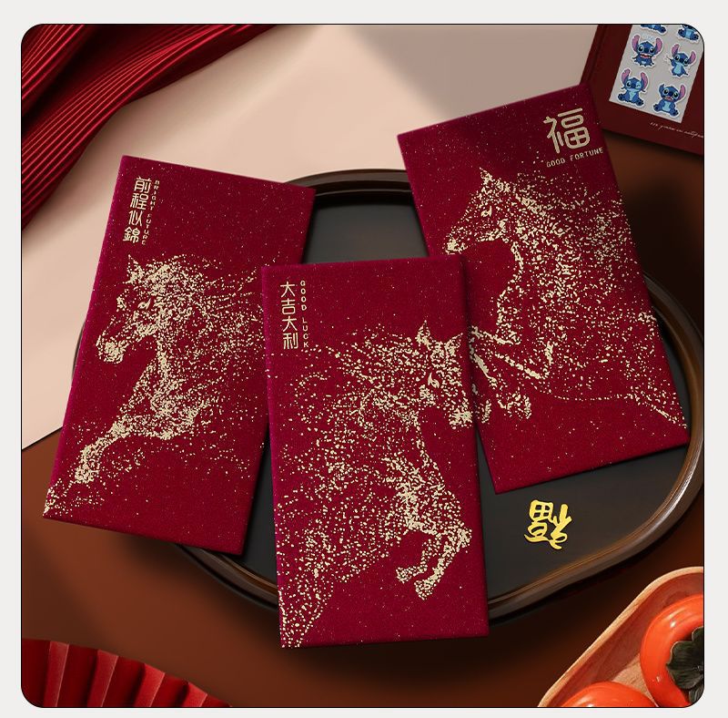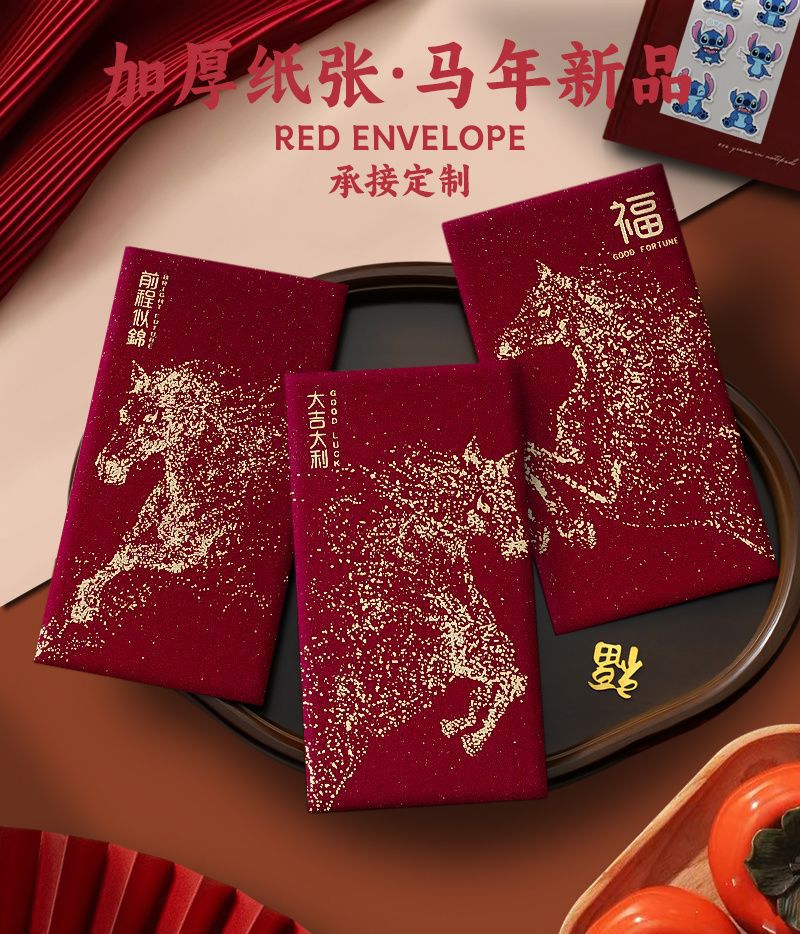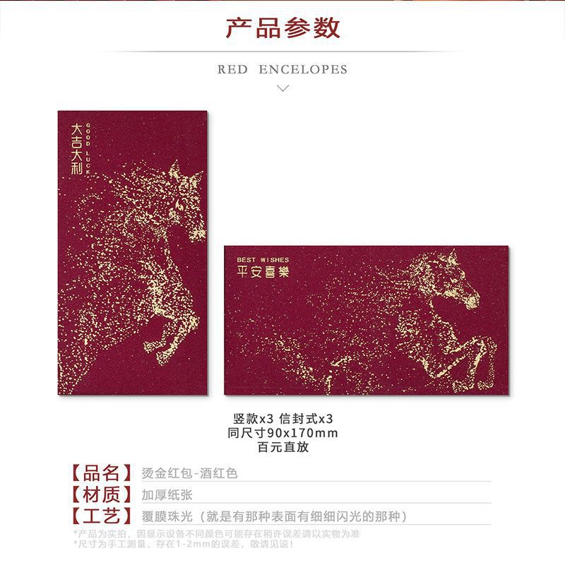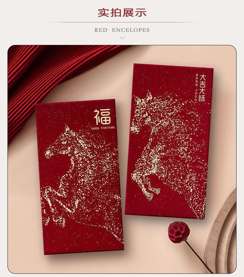 创意压岁红封包酒红轻奢新年红包袋2026年马年通用利是封高端