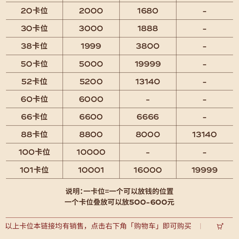 | 88卡位(可放8000/8800/13140元) | USD $28.54 | 1000 piece available |