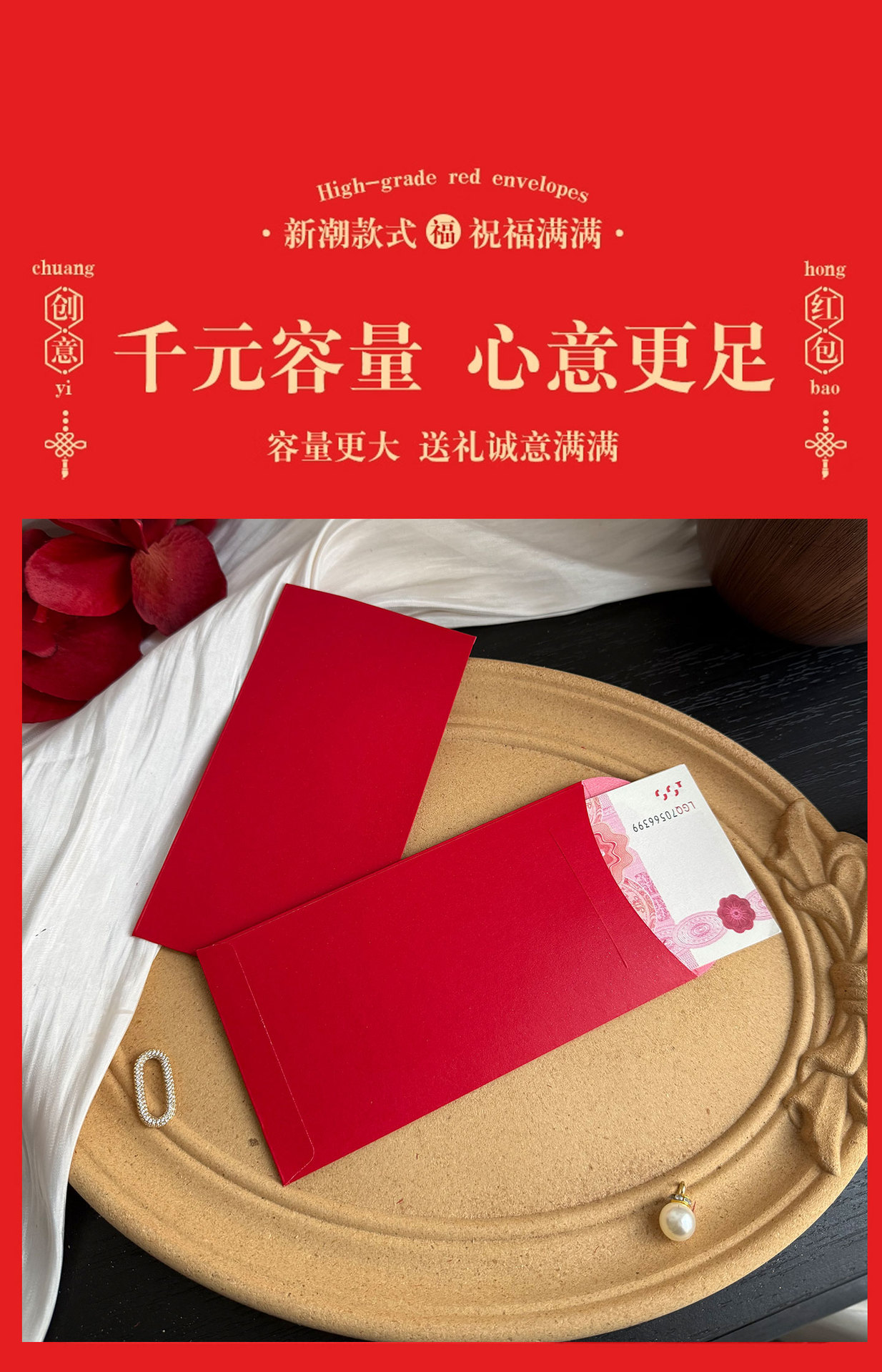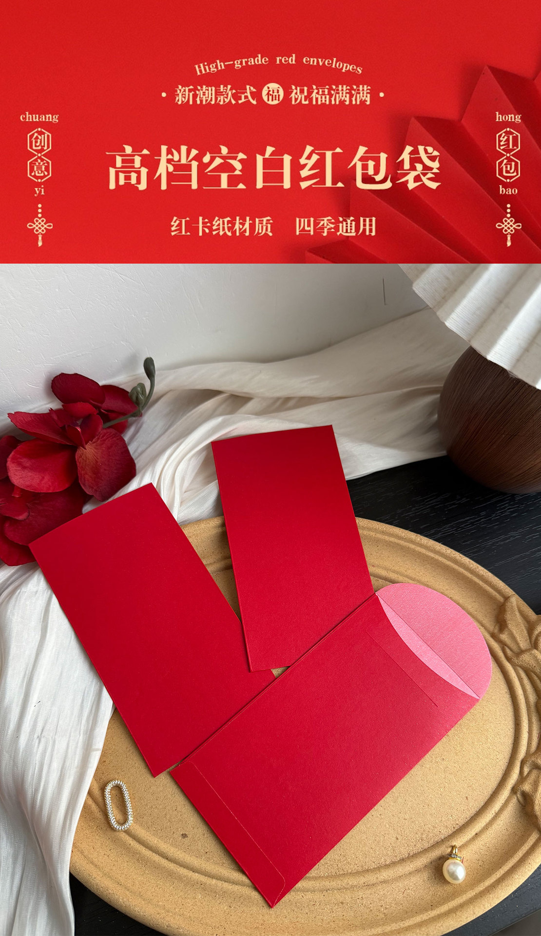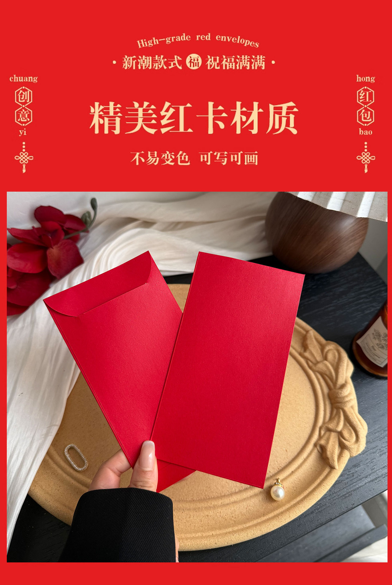 空白纯色无字红包通用款2026马年特种纸红色拓印利是封