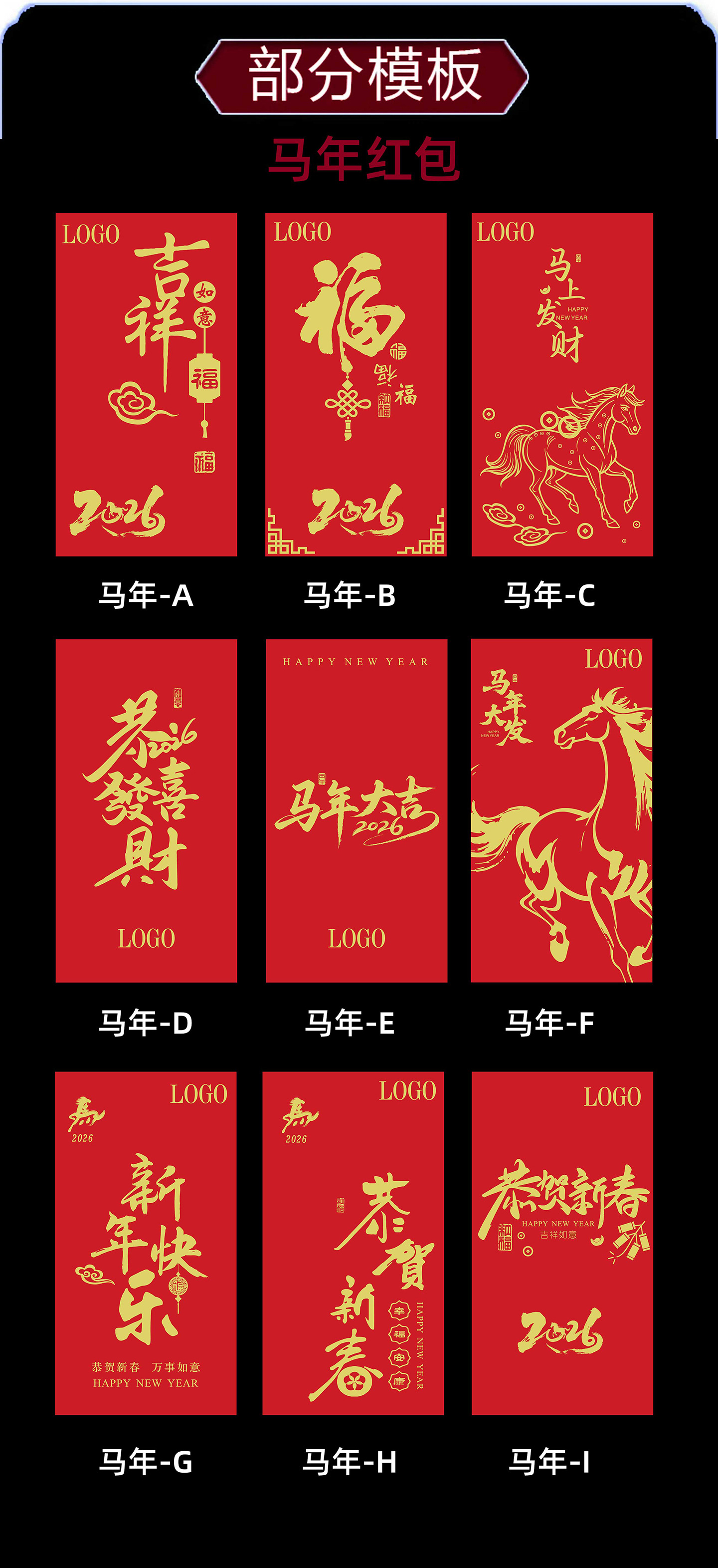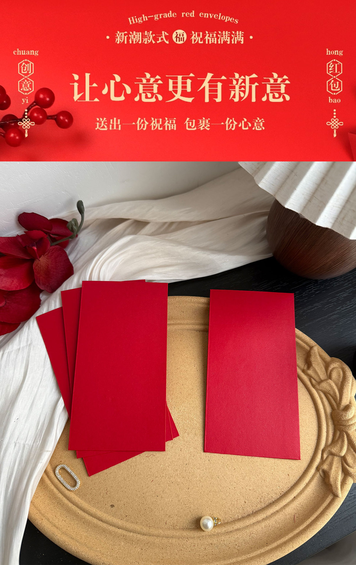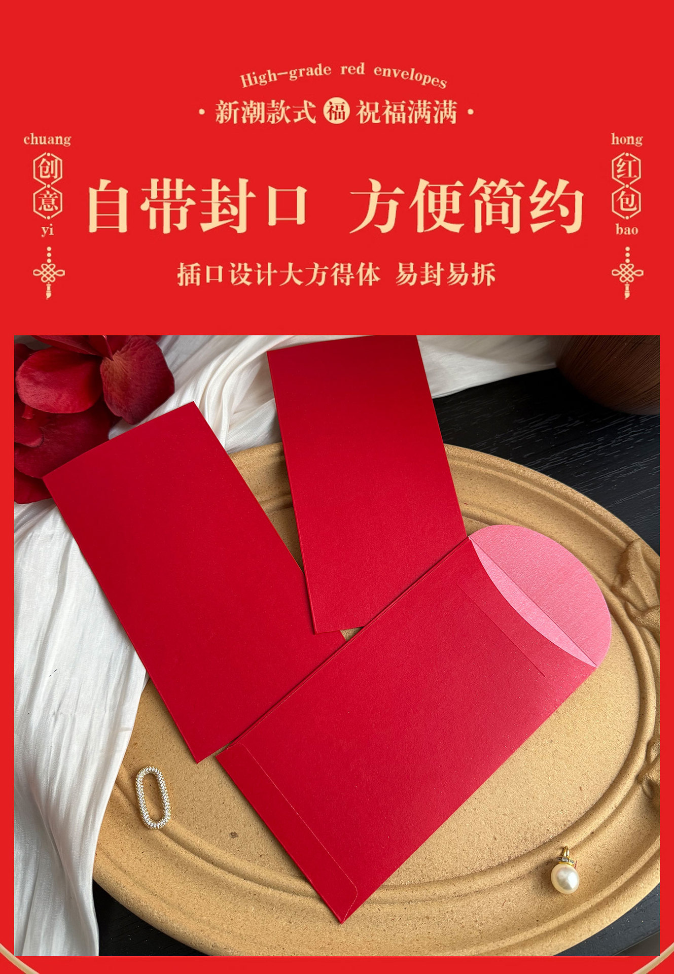 空白纯色无字红包通用款2026马年特种纸红色拓印利是封
