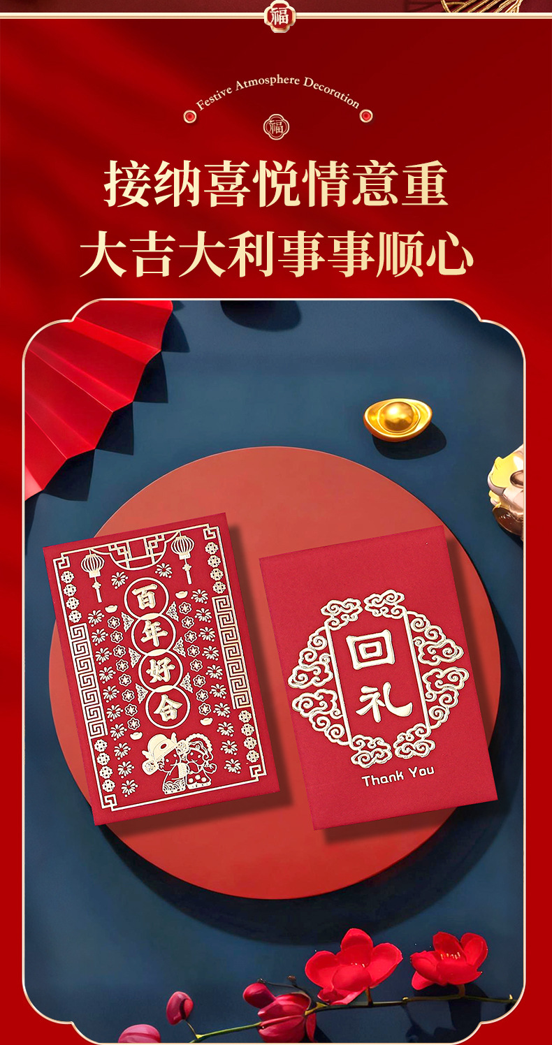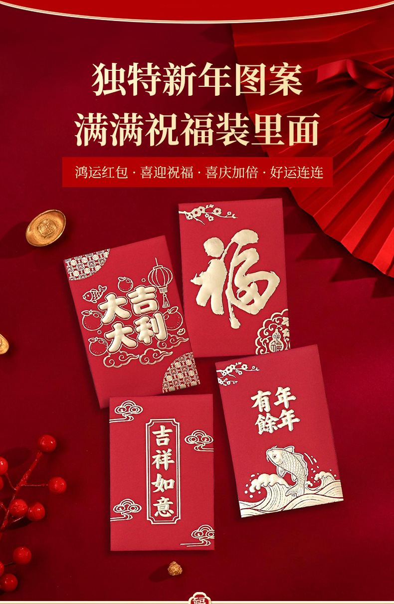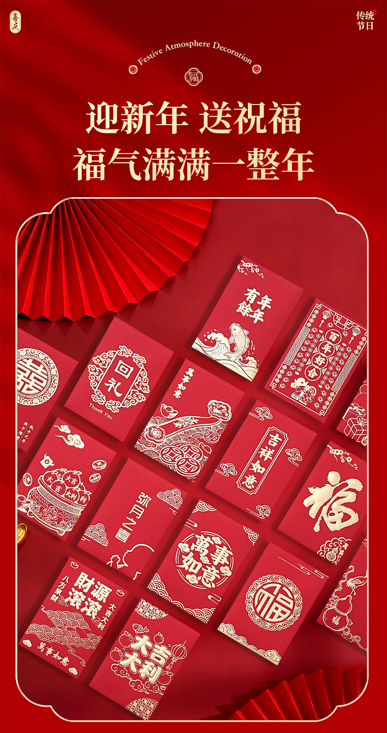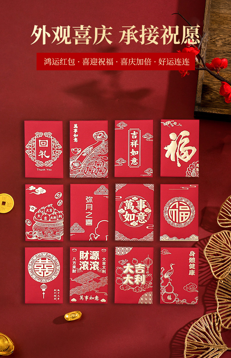 厂家批发红色结婚喜包小号新年红封包通用万事如意大吉大利利是封
