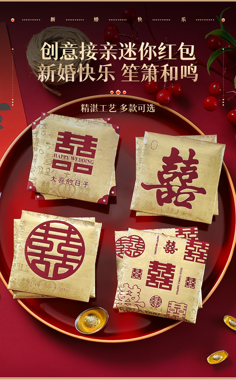 红封包结婚堵门专用婚礼接亲红包袋批发婚礼庆喜字开门迷你小喜包