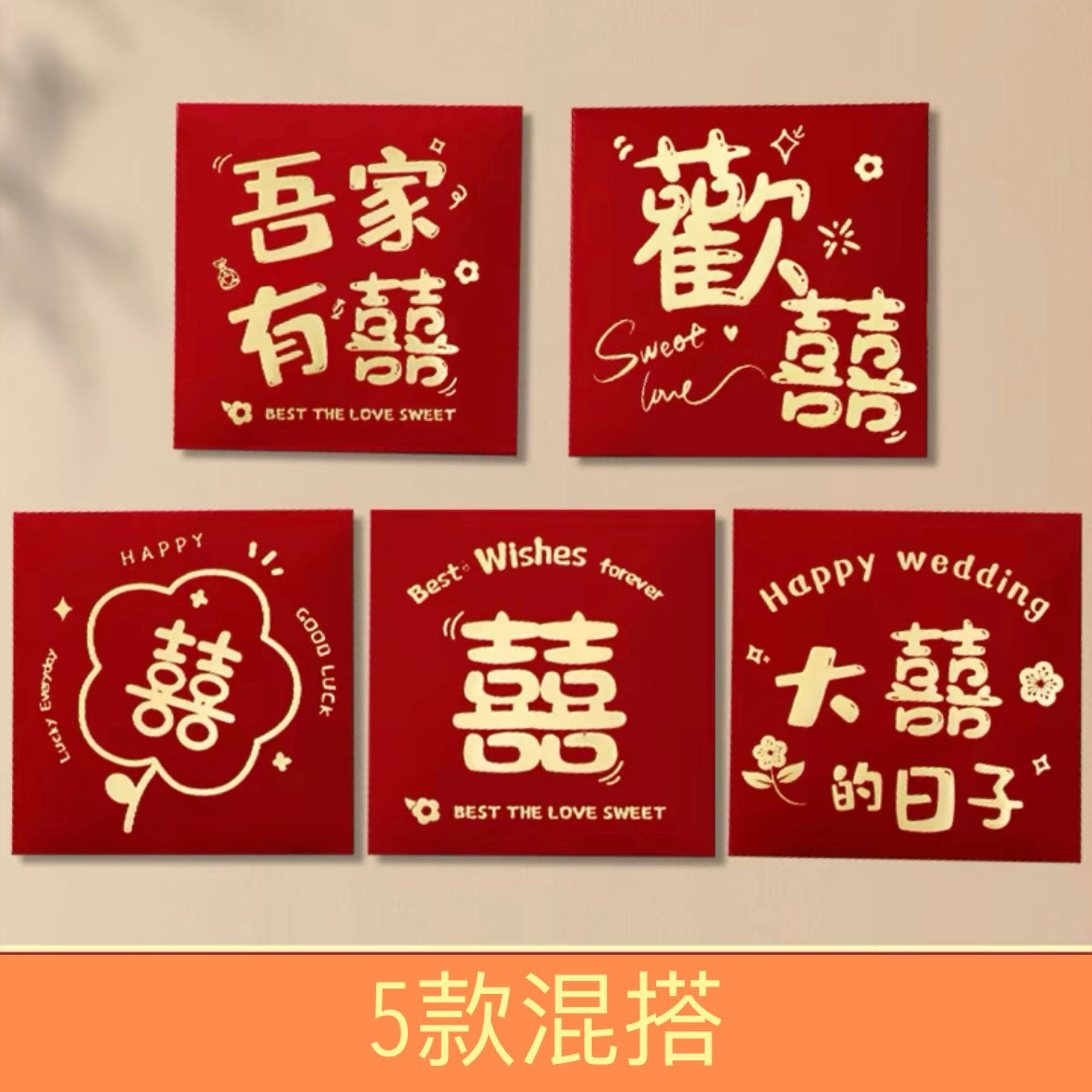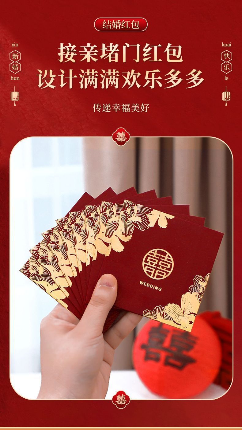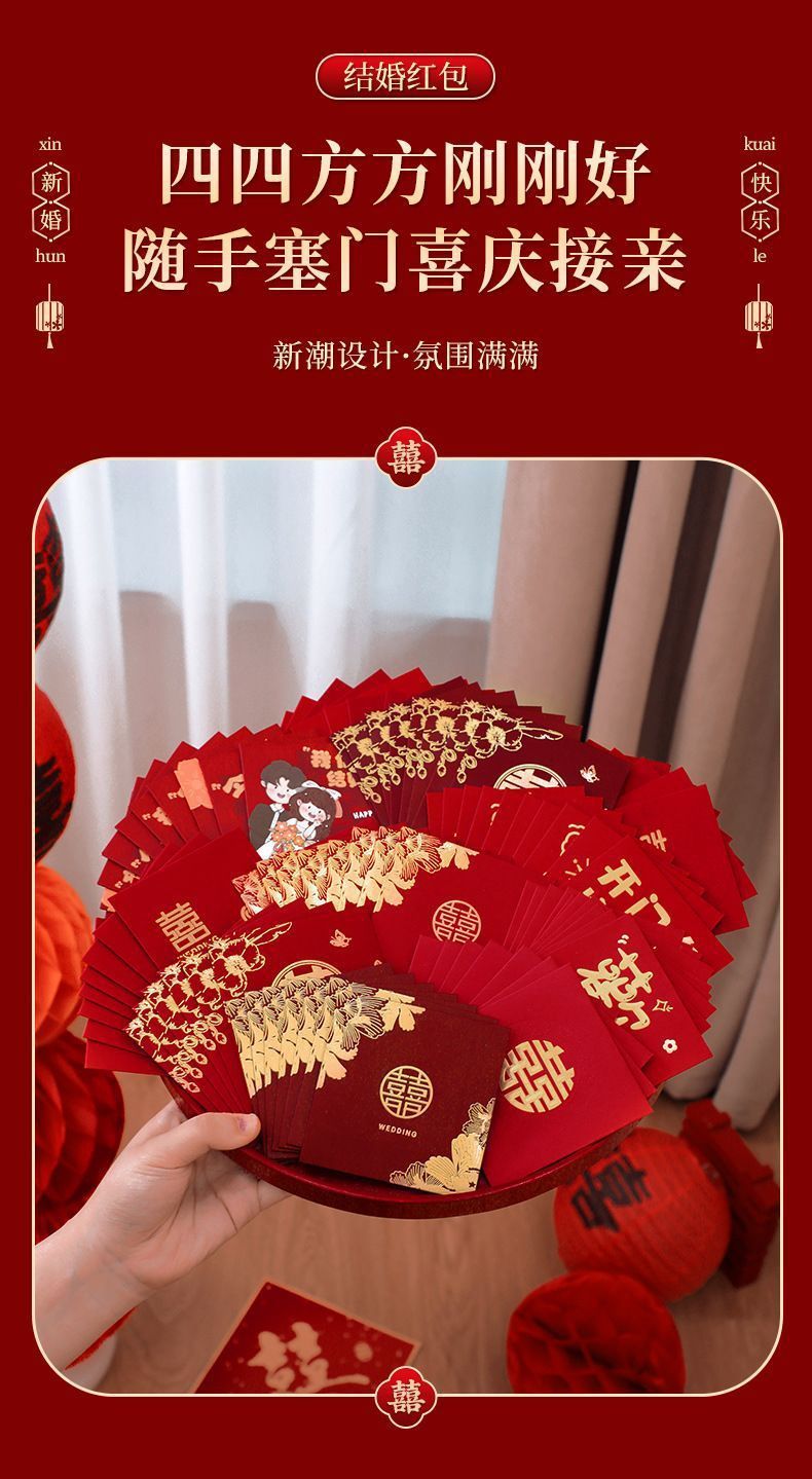 结婚红包袋婚礼接亲游戏道具喜字利封正方形小红包抛洒红包供应链