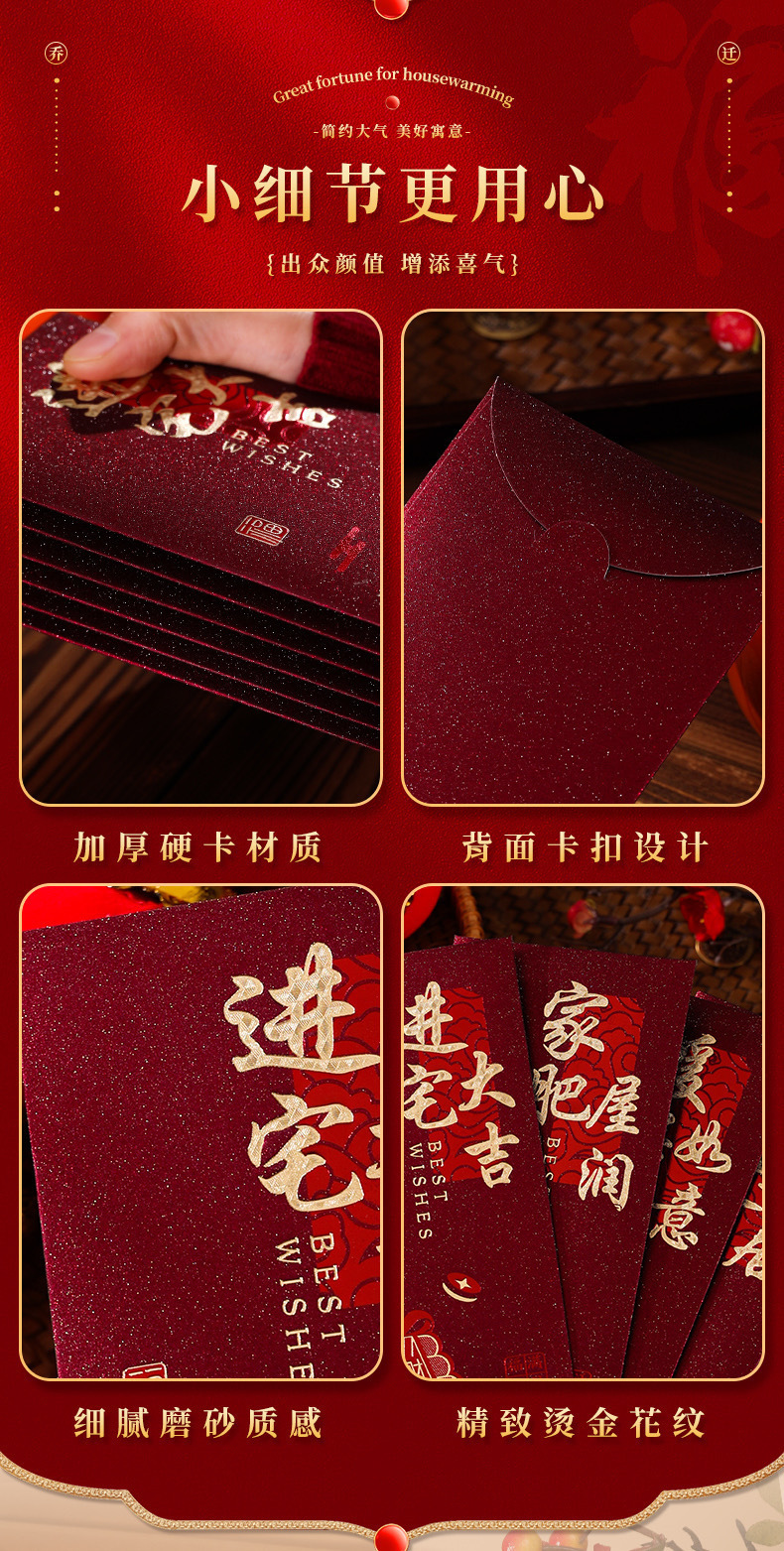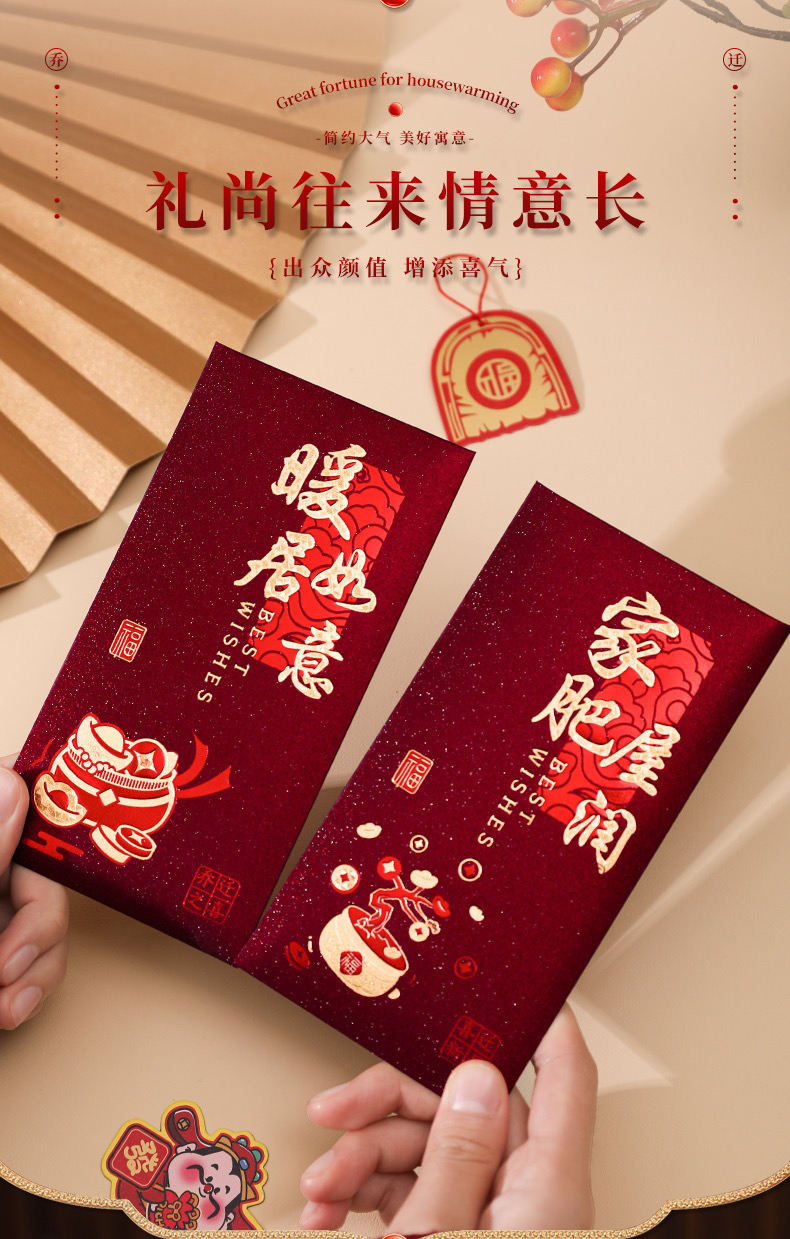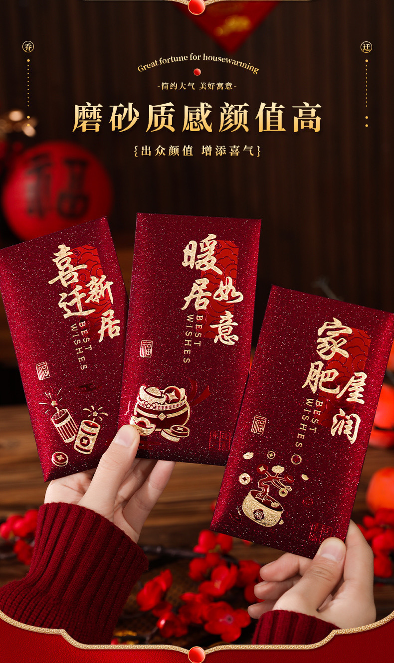 工厂批发红包乔迁之喜磨砂红色硬卡纸红包袋暖居搬新家利是封送礼