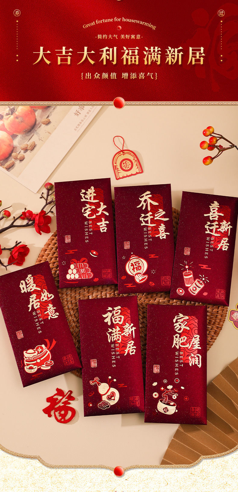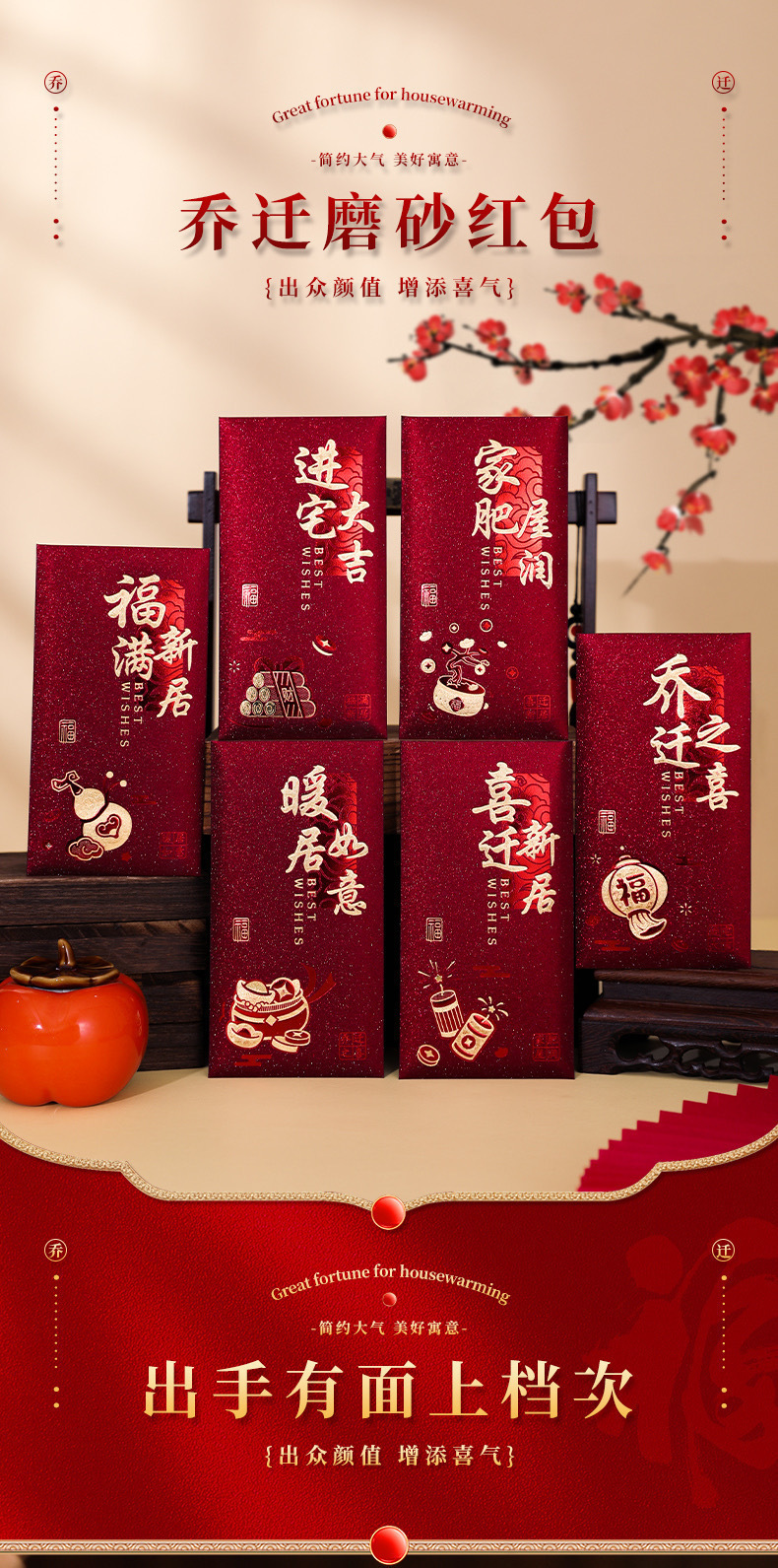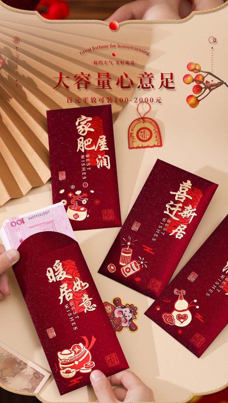 工厂批发红包乔迁之喜磨砂红色硬卡纸红包袋暖居搬新家利是封送礼