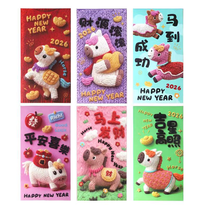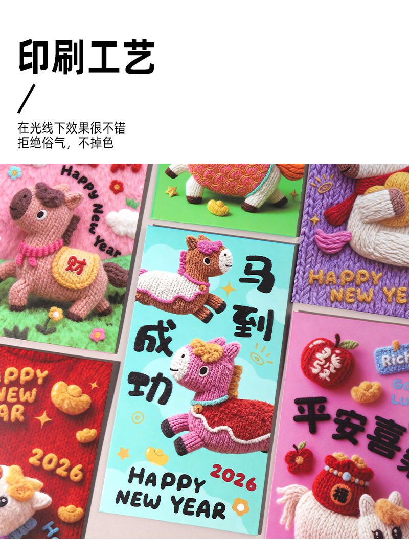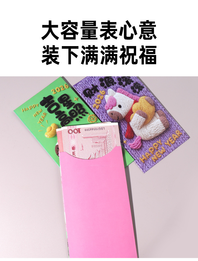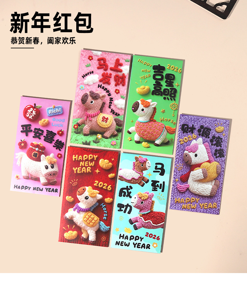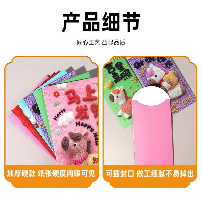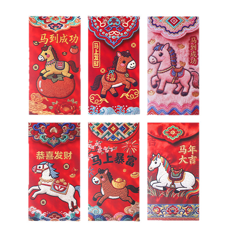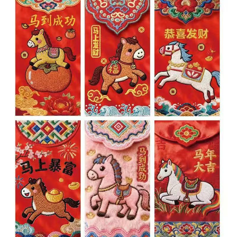 2026马年春节新款个性萌马卡通红包5D立体仿刺绣红包袋新年利是封