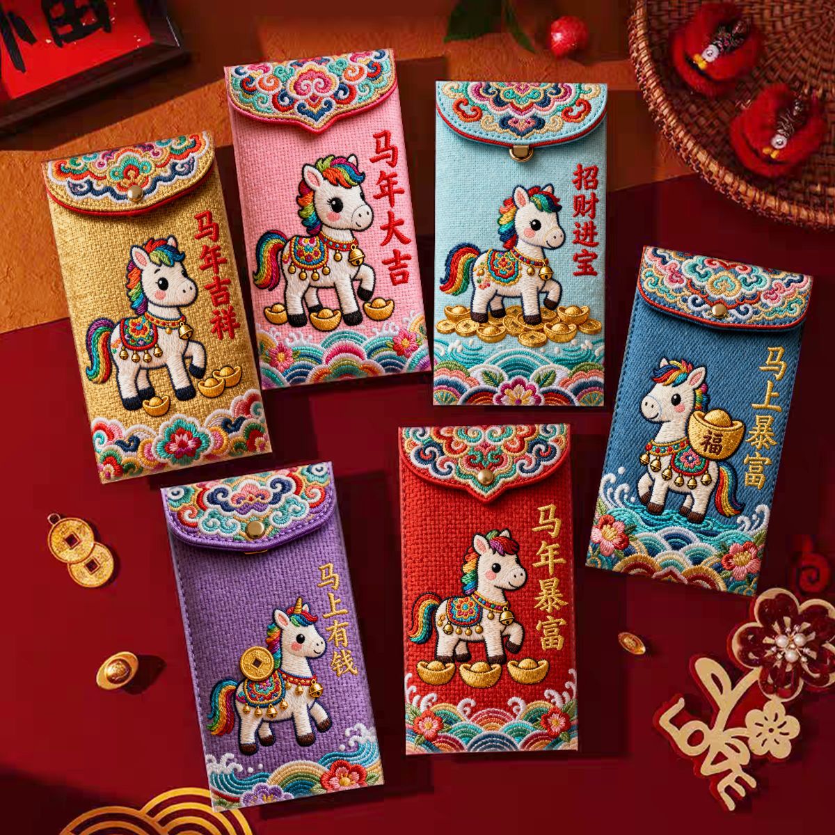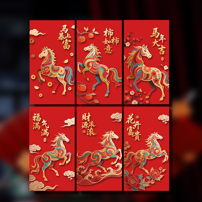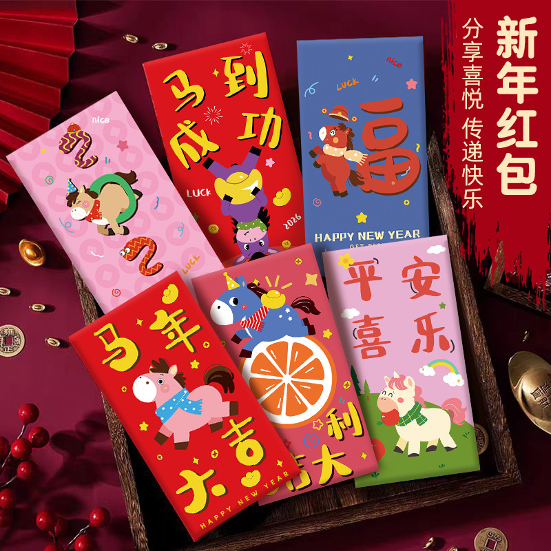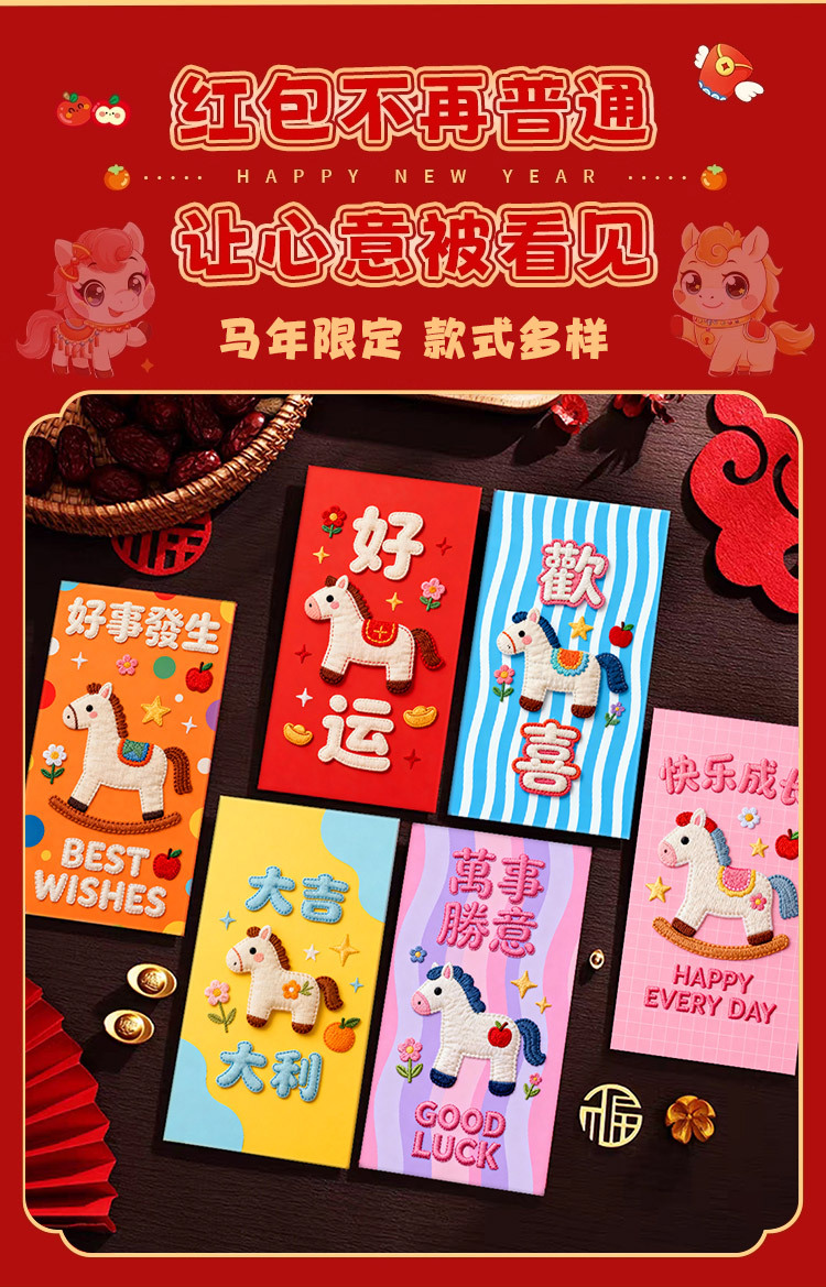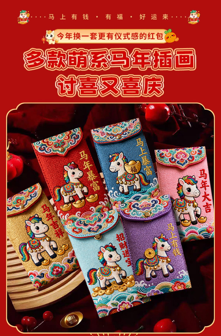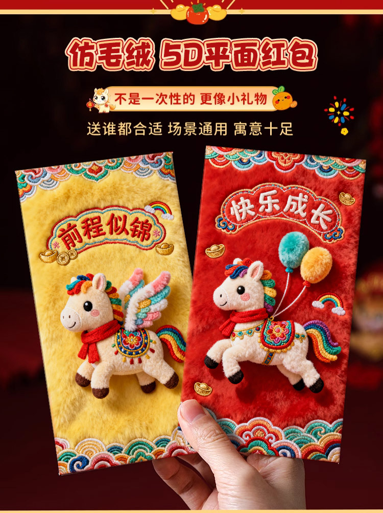 创意5D仿刺绣马年红包2026新款儿童卡通红包压岁新年马生肖利是封