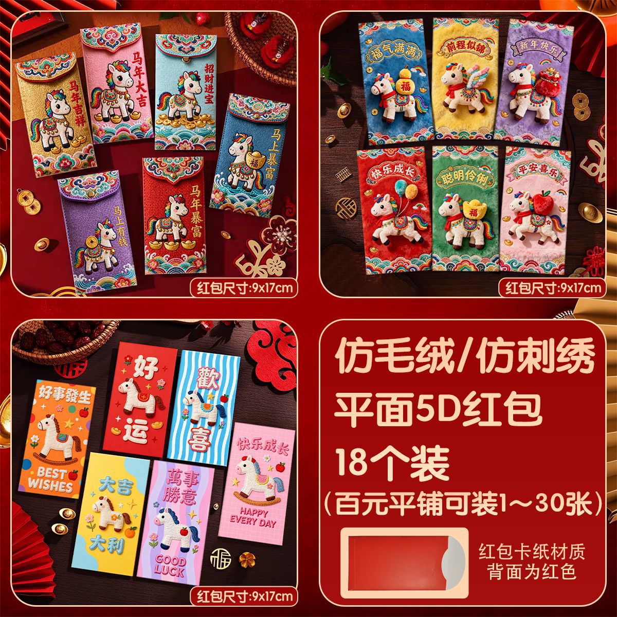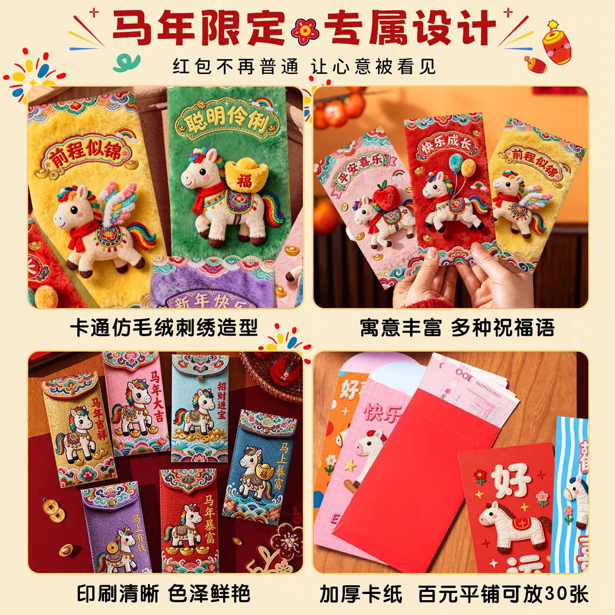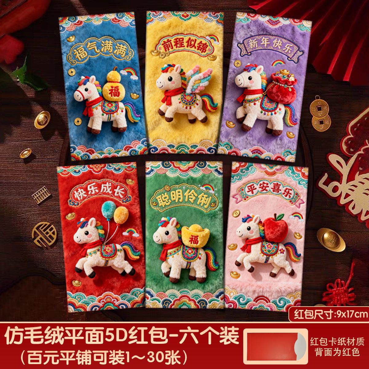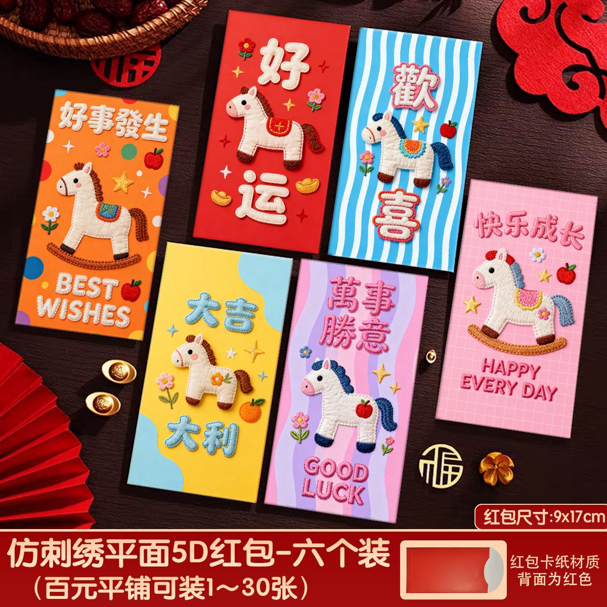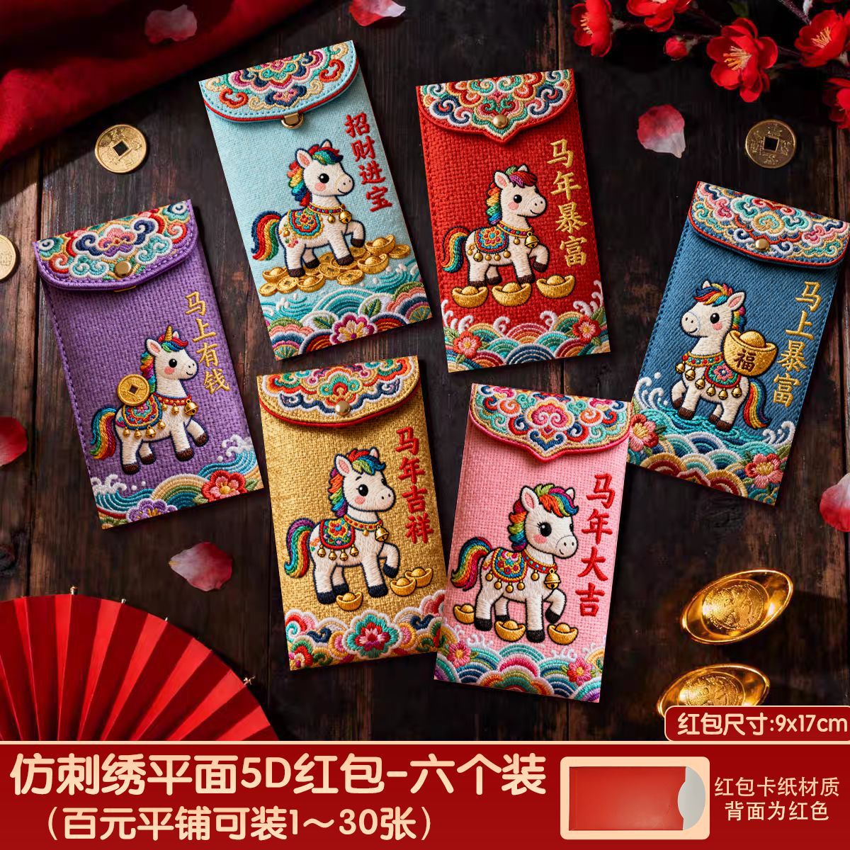创意5D仿刺绣马年红包2026新款儿童卡通红包压岁新年马生肖利是封