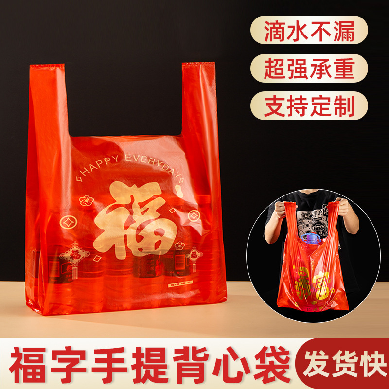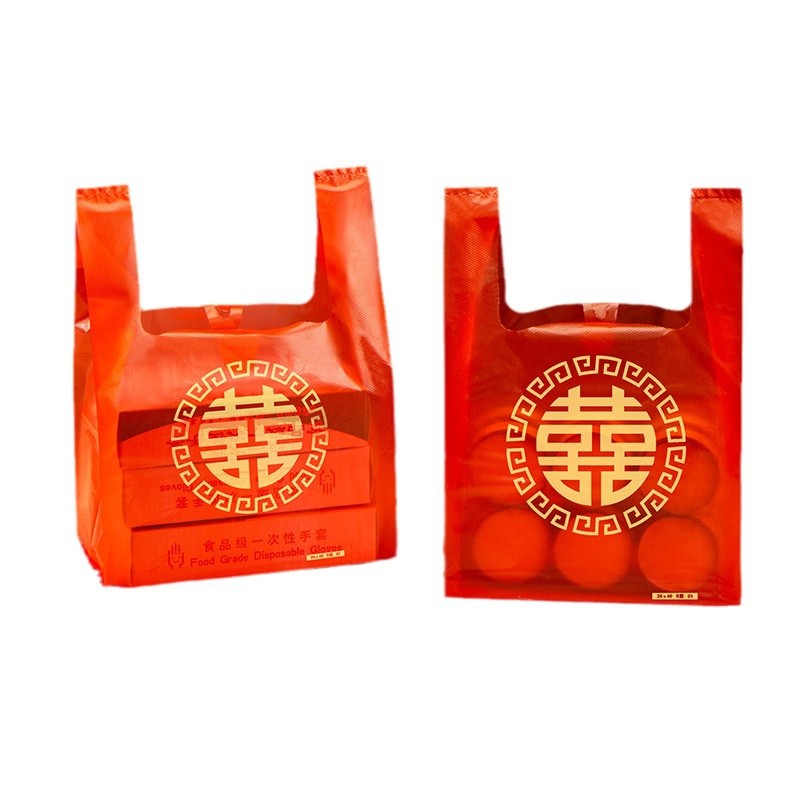 喜字塑料袋节日婚庆新年礼品红色手提背心式方便袋子大中小号批发