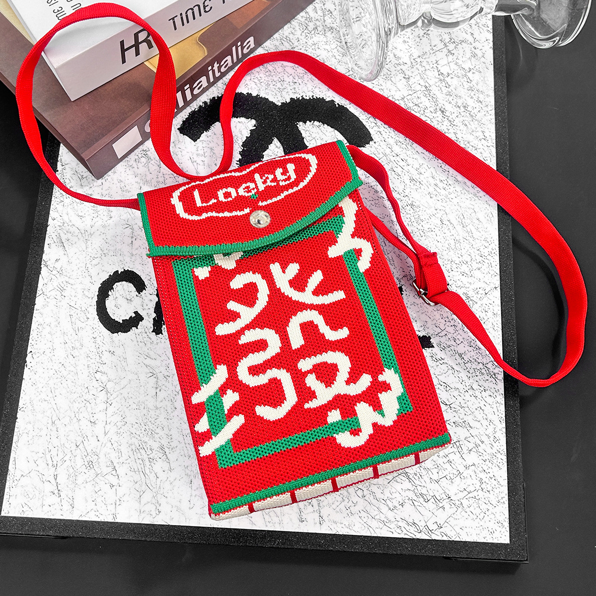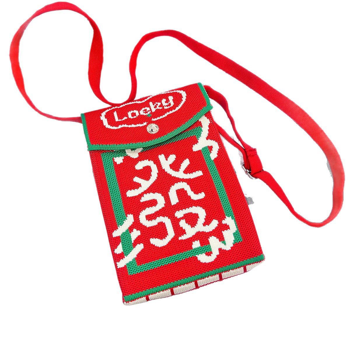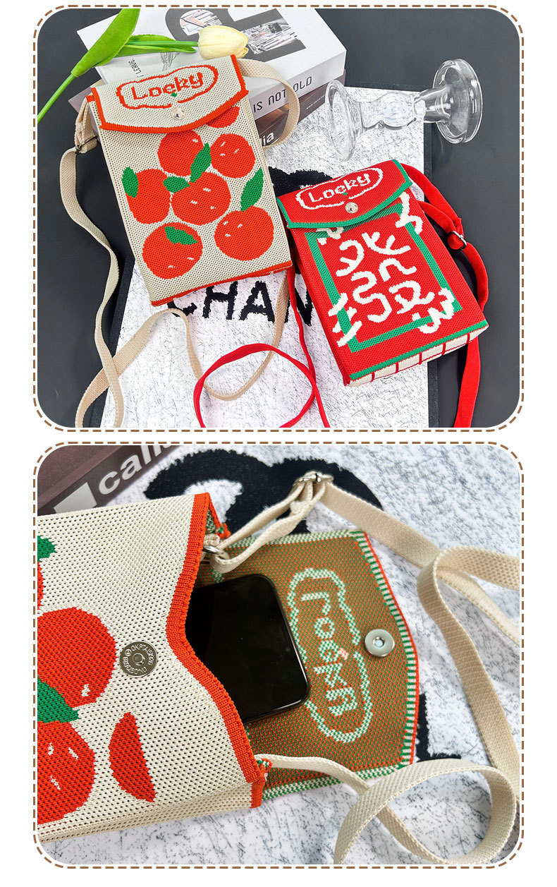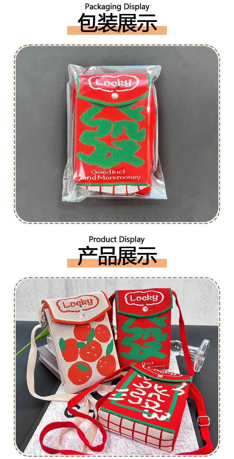 2026新款新年包包定制发马年春节喜庆红色手机包随身针织斜跨小包