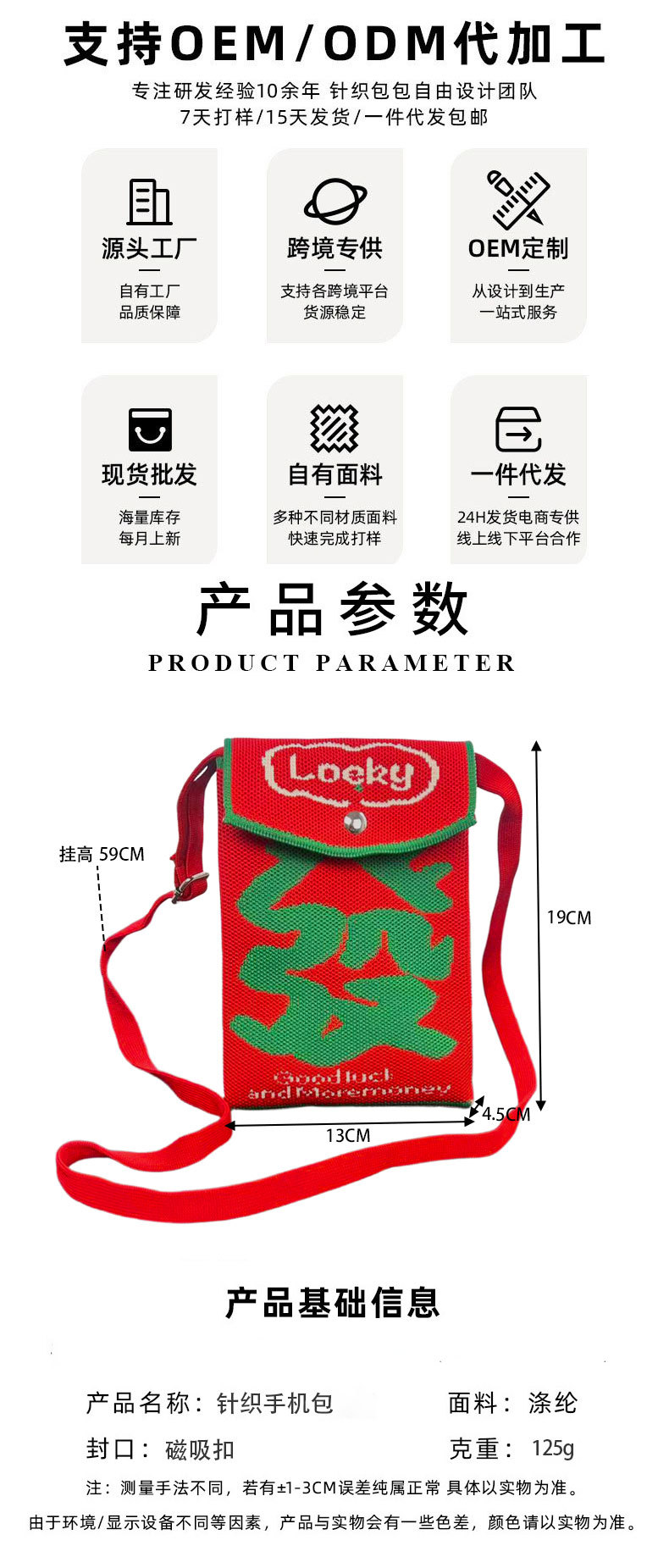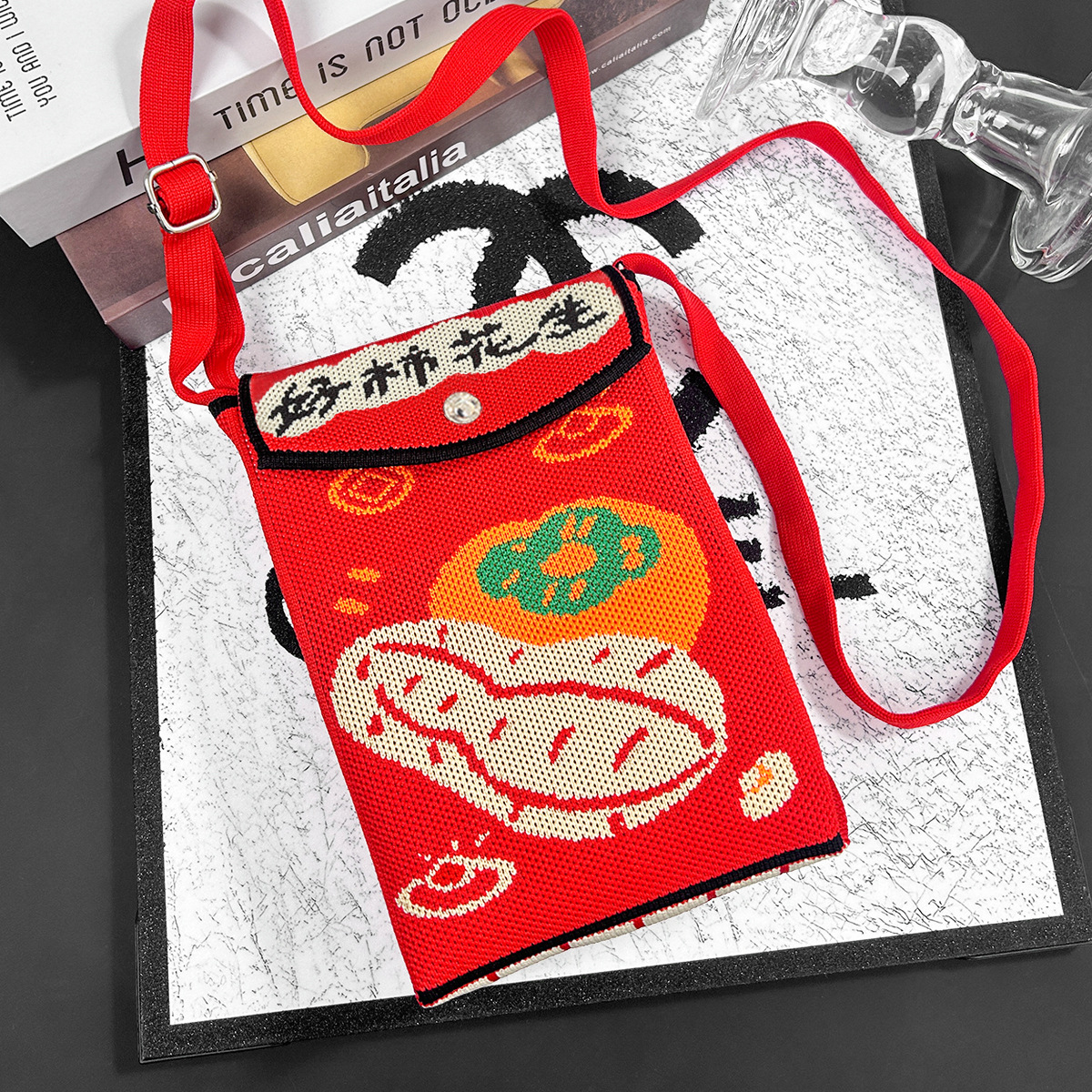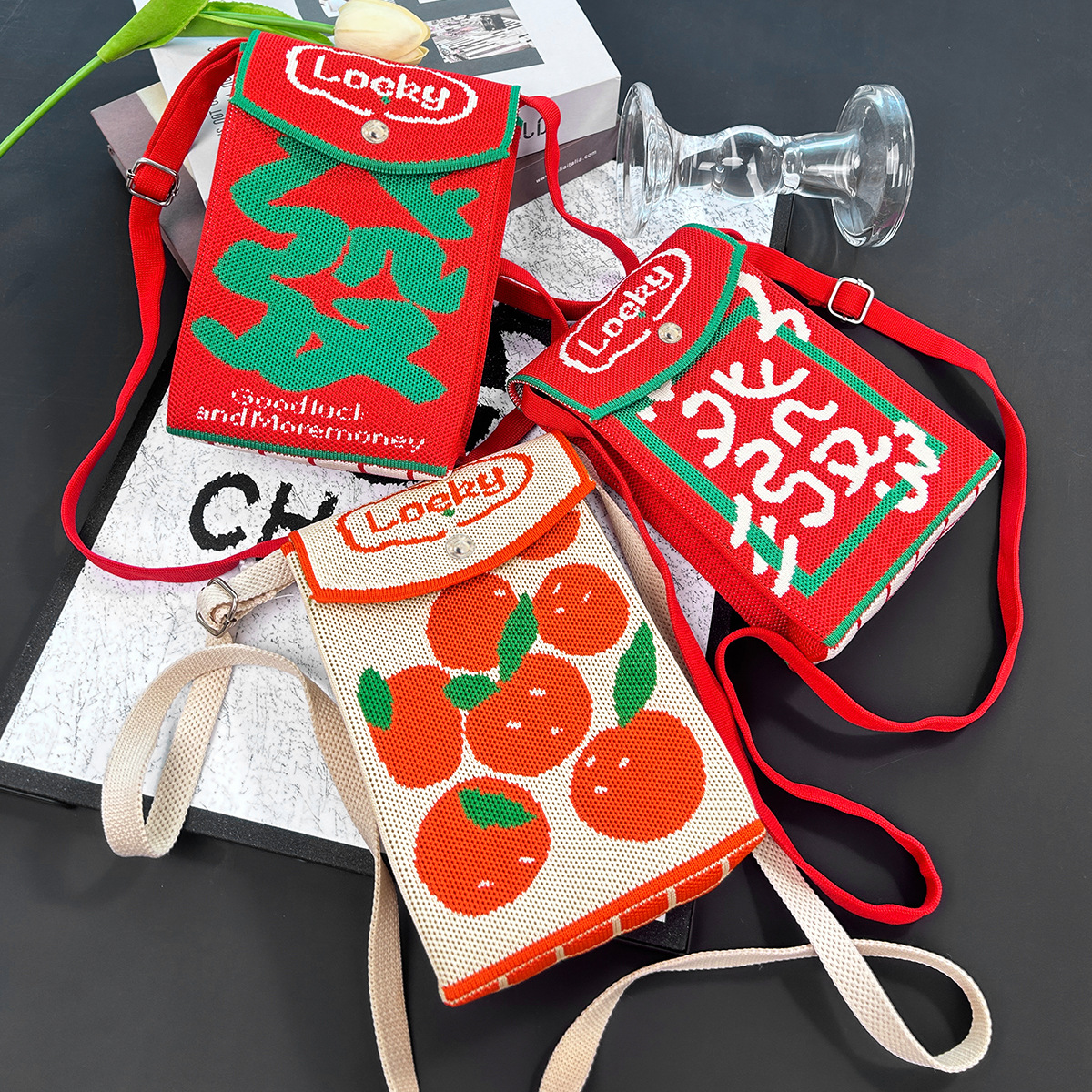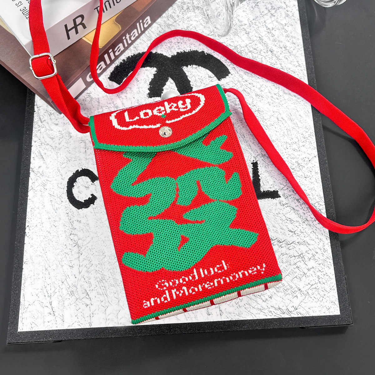 2026新款新年包包定制发马年春节喜庆红色手机包随身针织斜跨小包