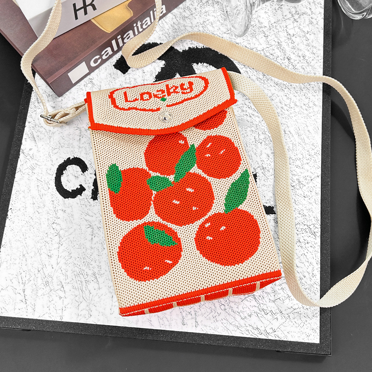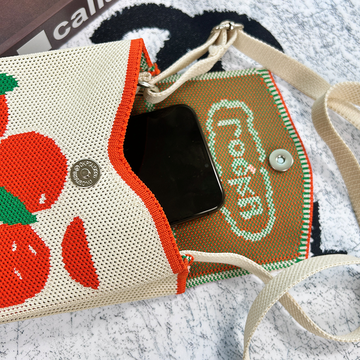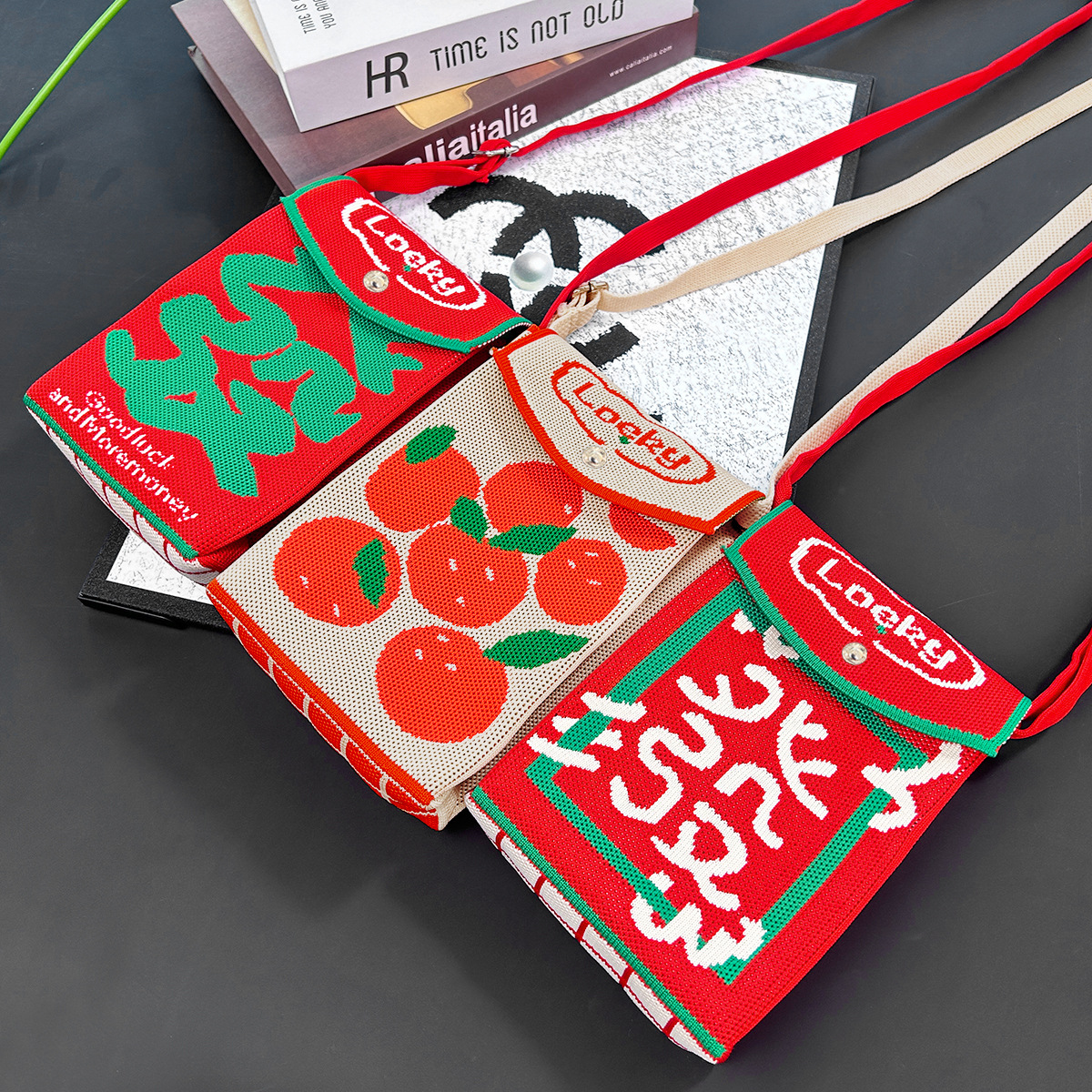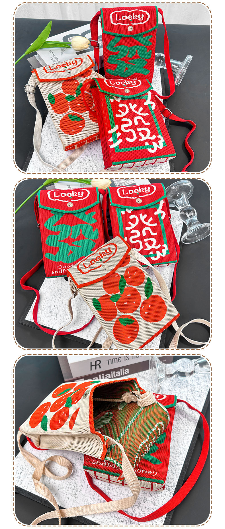 2026新款新年包包定制发马年春节喜庆红色手机包随身针织斜跨小包