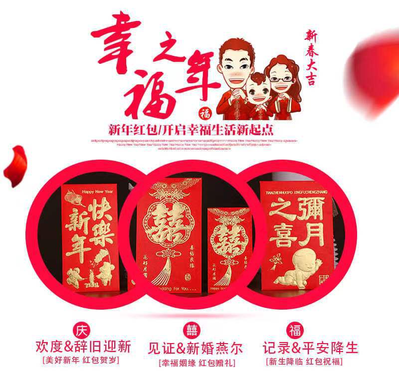 永吉结婚过年压岁奖字福寿贺喜大小号利是封硬质通用红包厂家批发