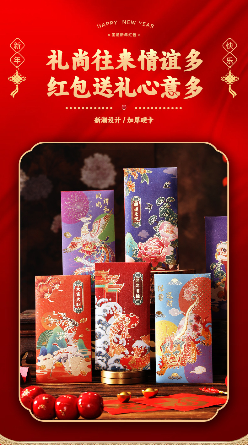 过年春节红包袋新年贺福压岁包大小号红包利是封蛇年红包高级感