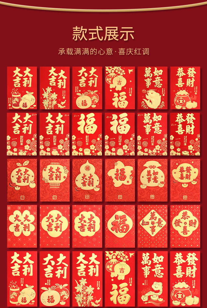 2026年春节过年红包马年结婚接亲堵门红包袋红色烫金压岁钱利是封