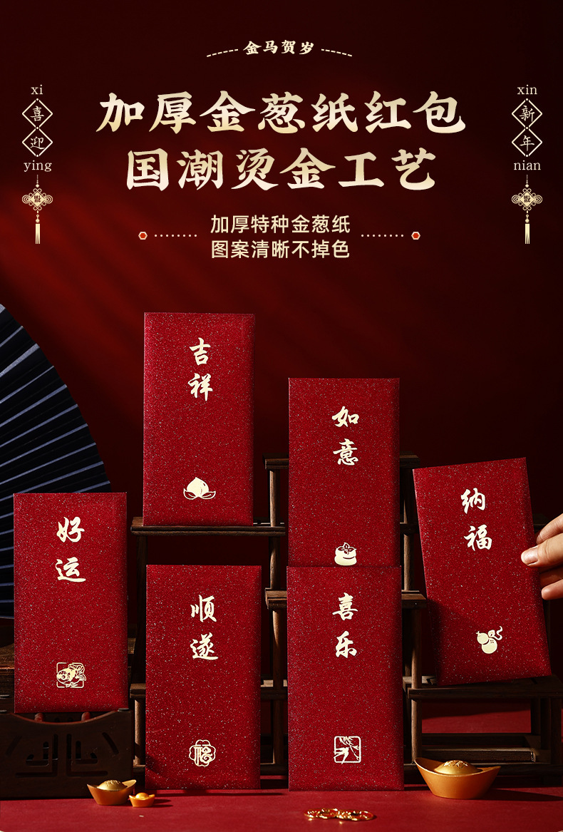 马年创意春节复古酒红压岁红包袋新年红包2026新款过年通用利是封