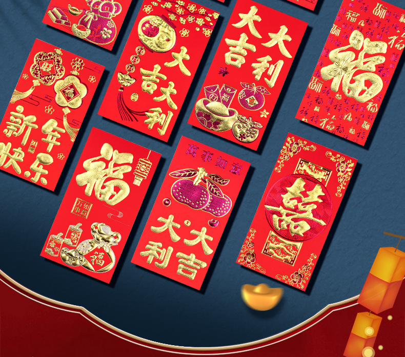 红包袋新款新年压岁结婚专用通用万元大红包袋创意烫金硬质纸大小