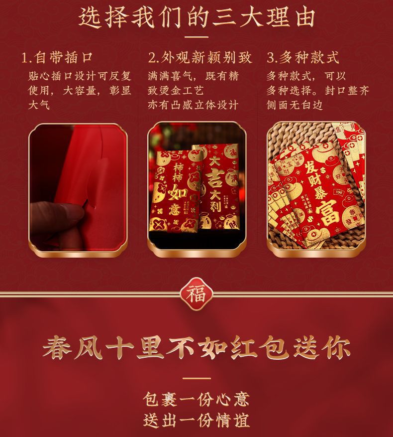 2026年通用大红包袋个性创意新年压岁春节通用利是封发财暴富厂家