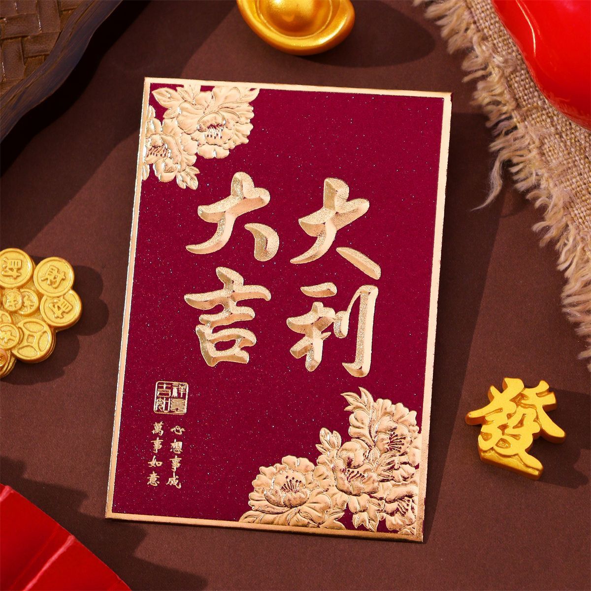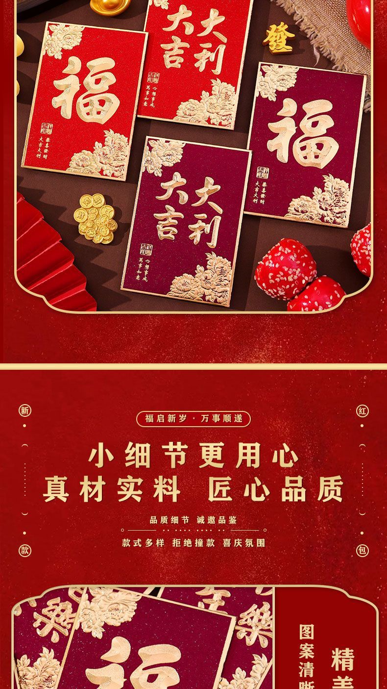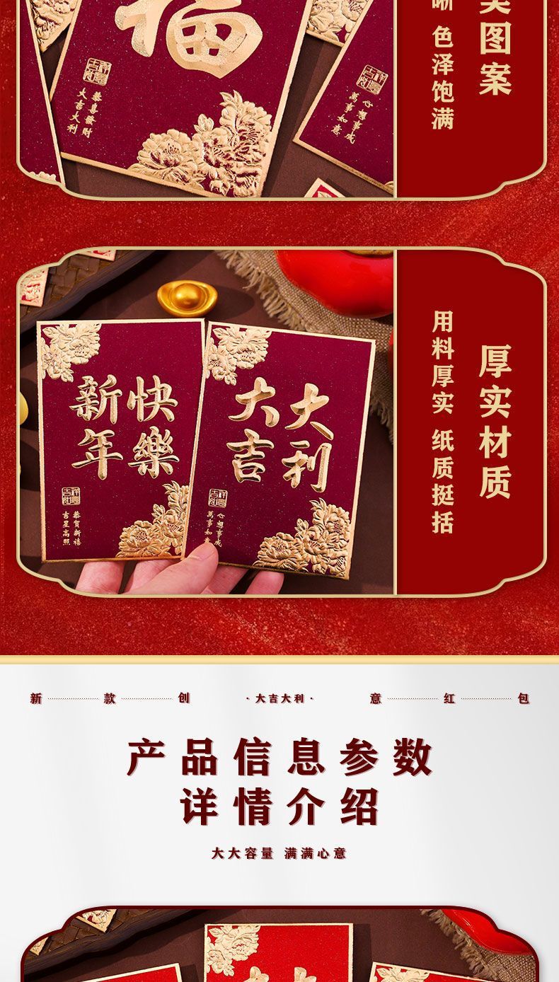 大吉大利利是封2026新款复古烫金磨砂红包袋过年春节通用小号厚款
