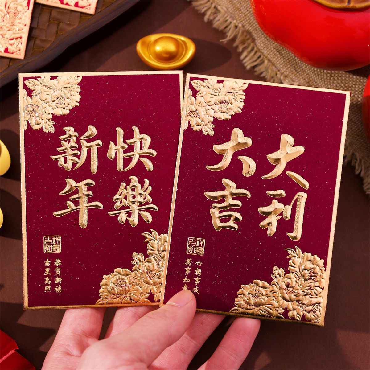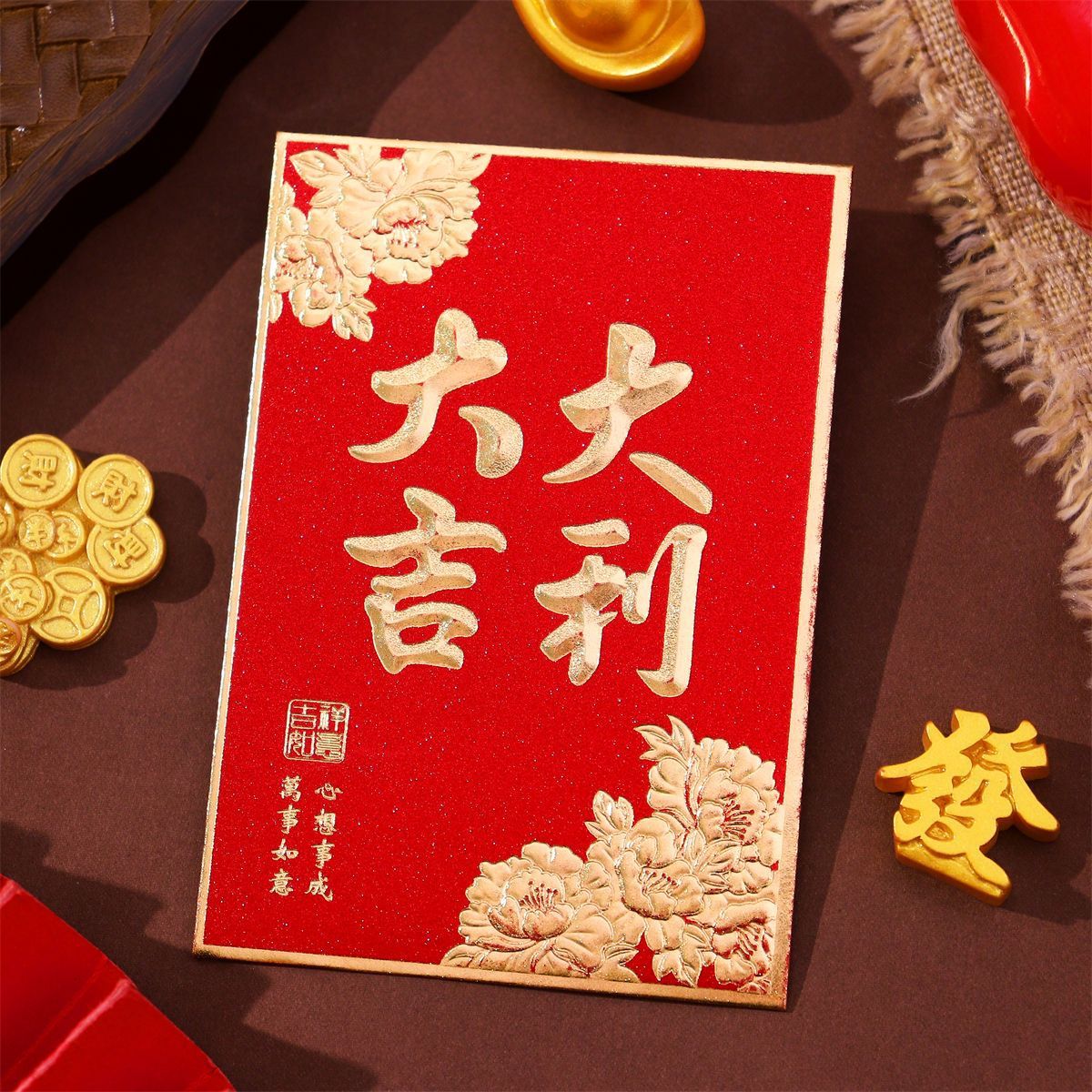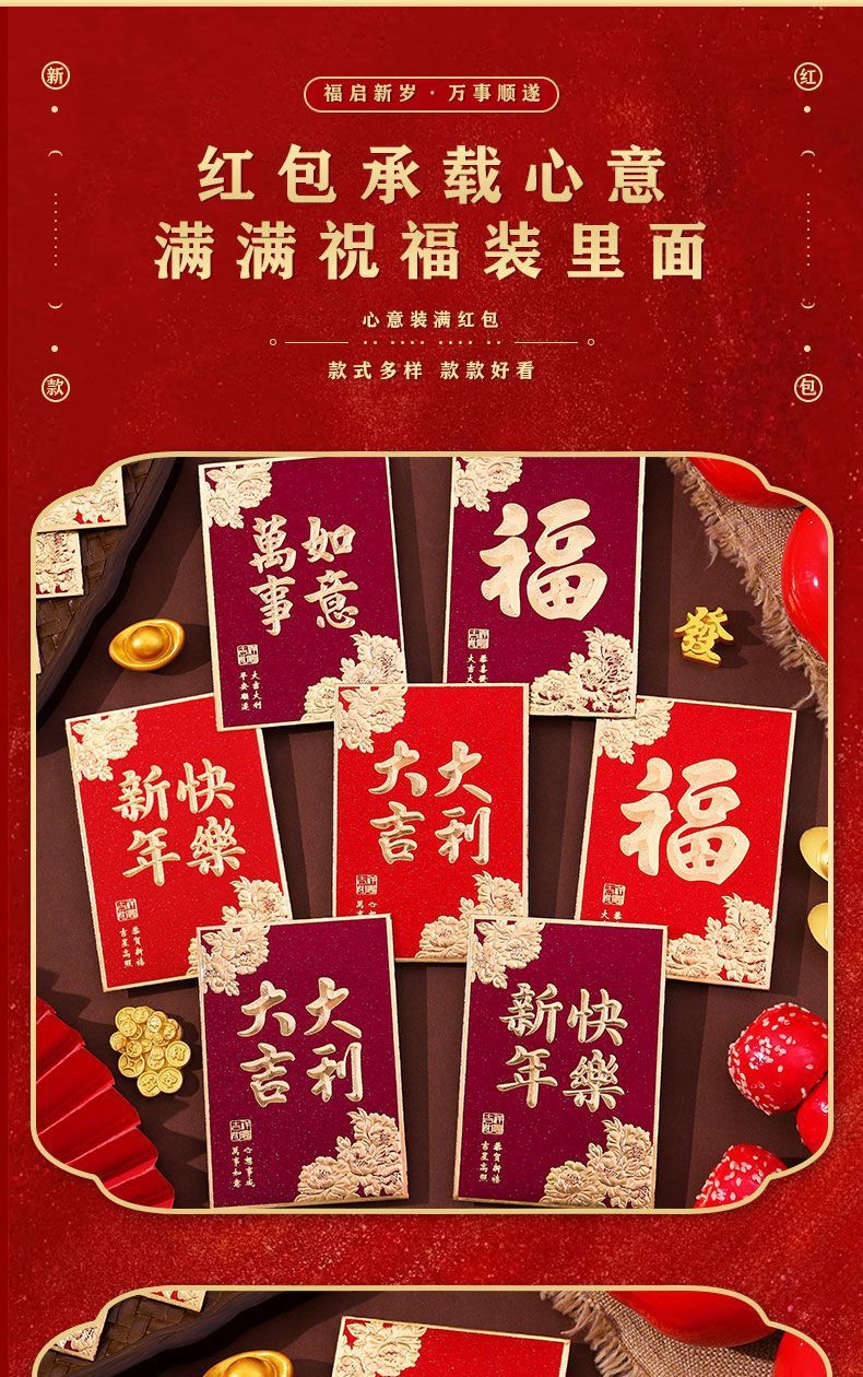 大吉大利利是封2026新款复古烫金磨砂红包袋过年春节通用小号厚款
