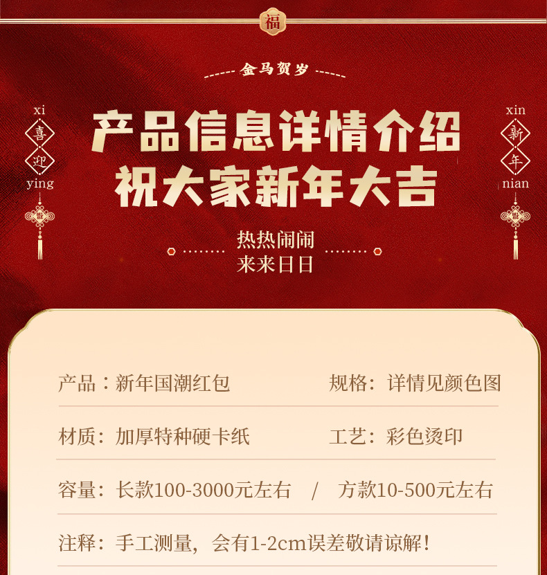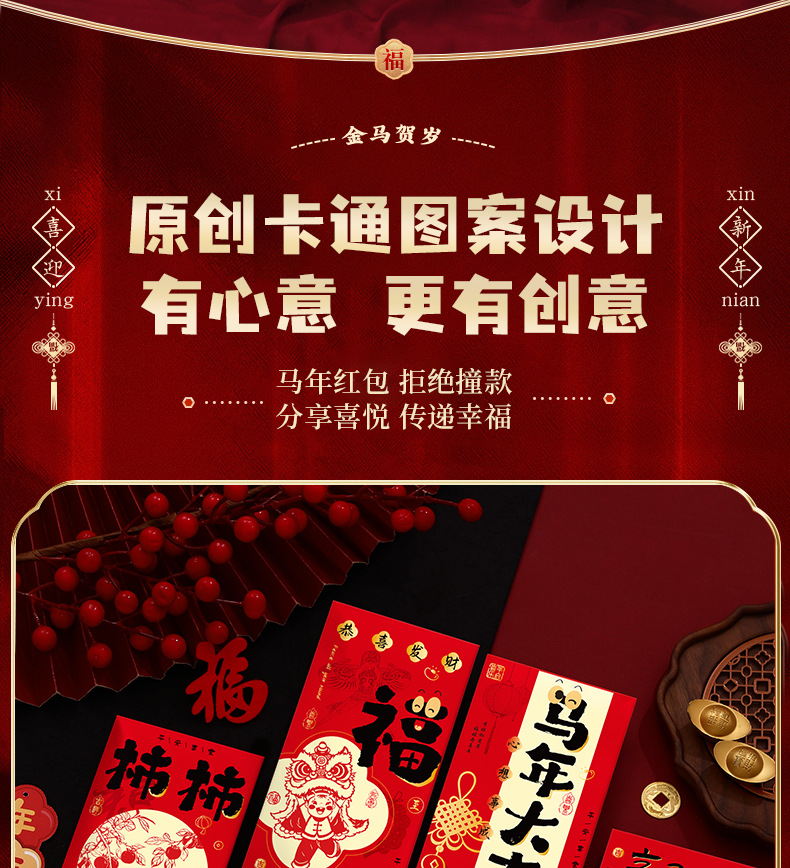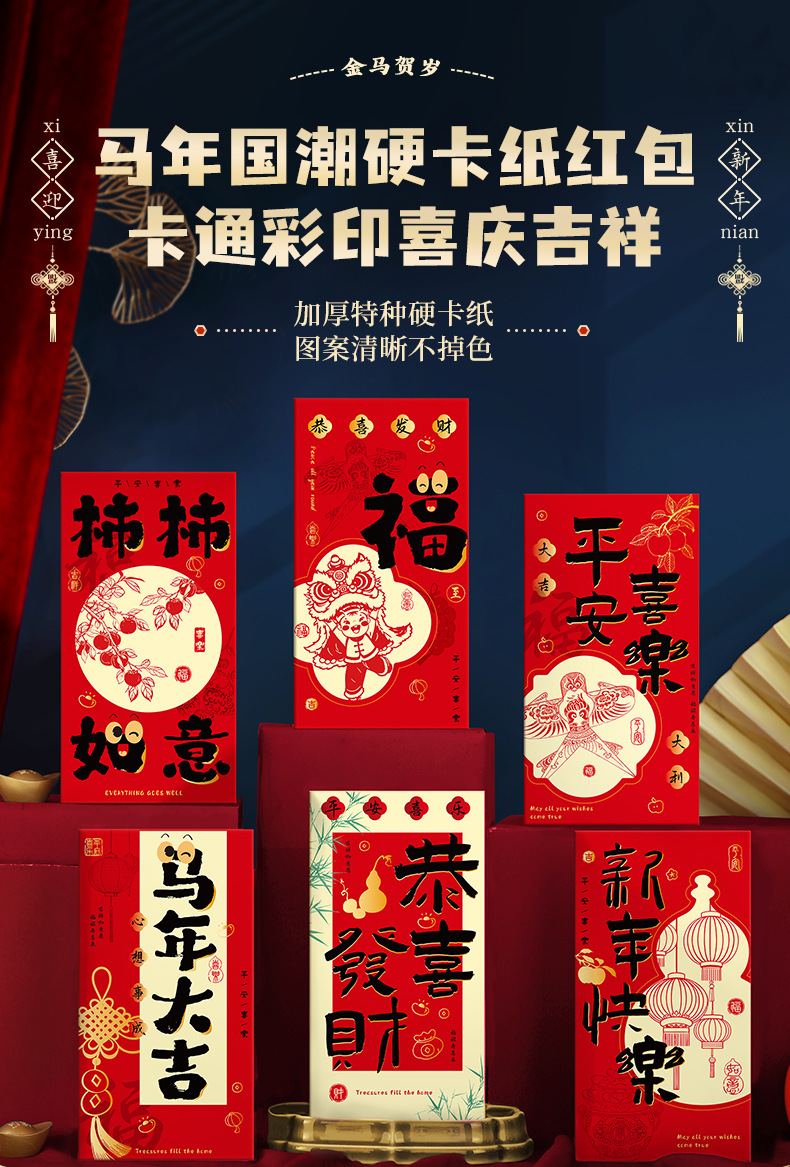 新年红包印logo利是封新款2026马年卡通钱袋送朋友礼金包通用红封