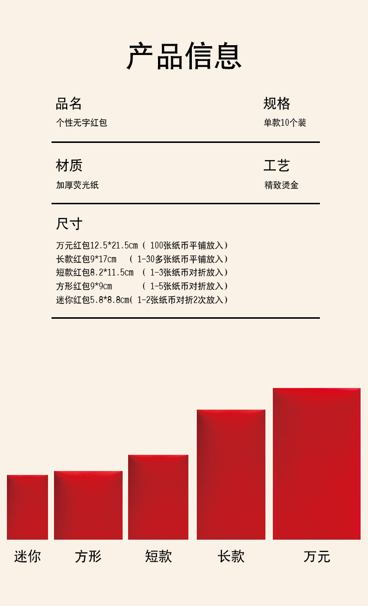 无字红包袋空白通用红包定万元logo大中小红包袋2026新年利是封