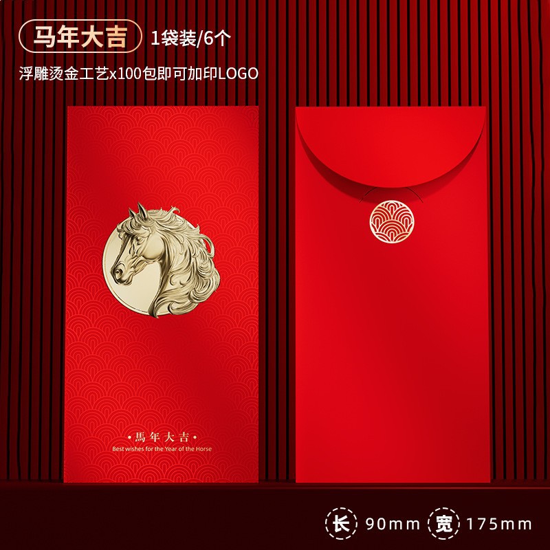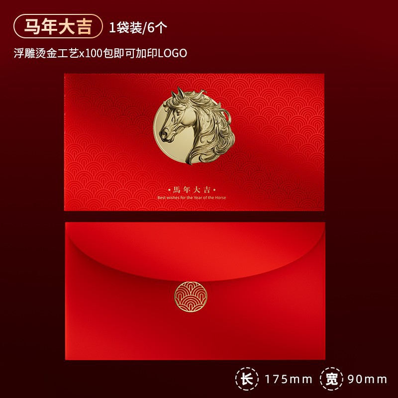 2026浮雕烫金春节红包现货批发锦鲤跃龙门马年新款利是封logo定制