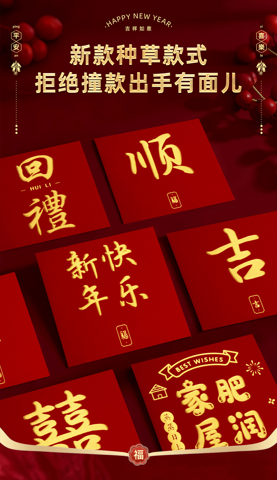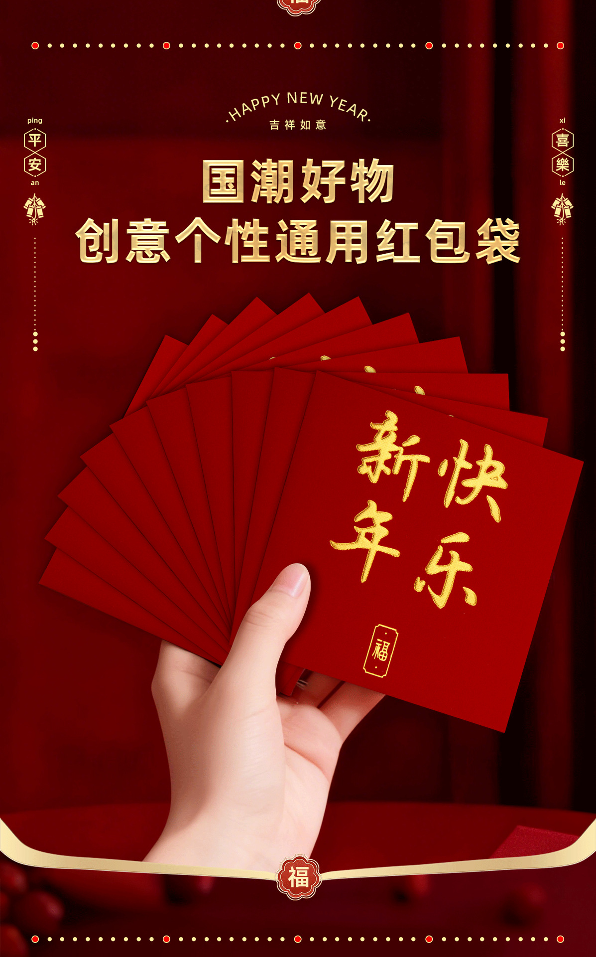 26马年新年快乐红年利是封个性创意加厚烫金硬质百元小号压岁钱包