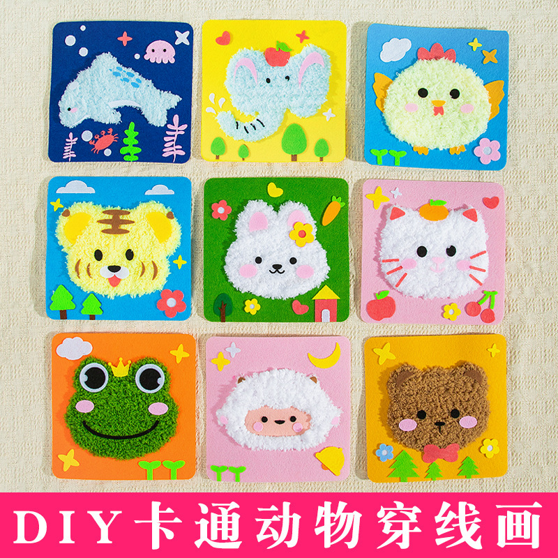 幼儿园礼物送全班手工缝缝乐卡通绒线刺绣画DIY穿线画戳戳乐材料