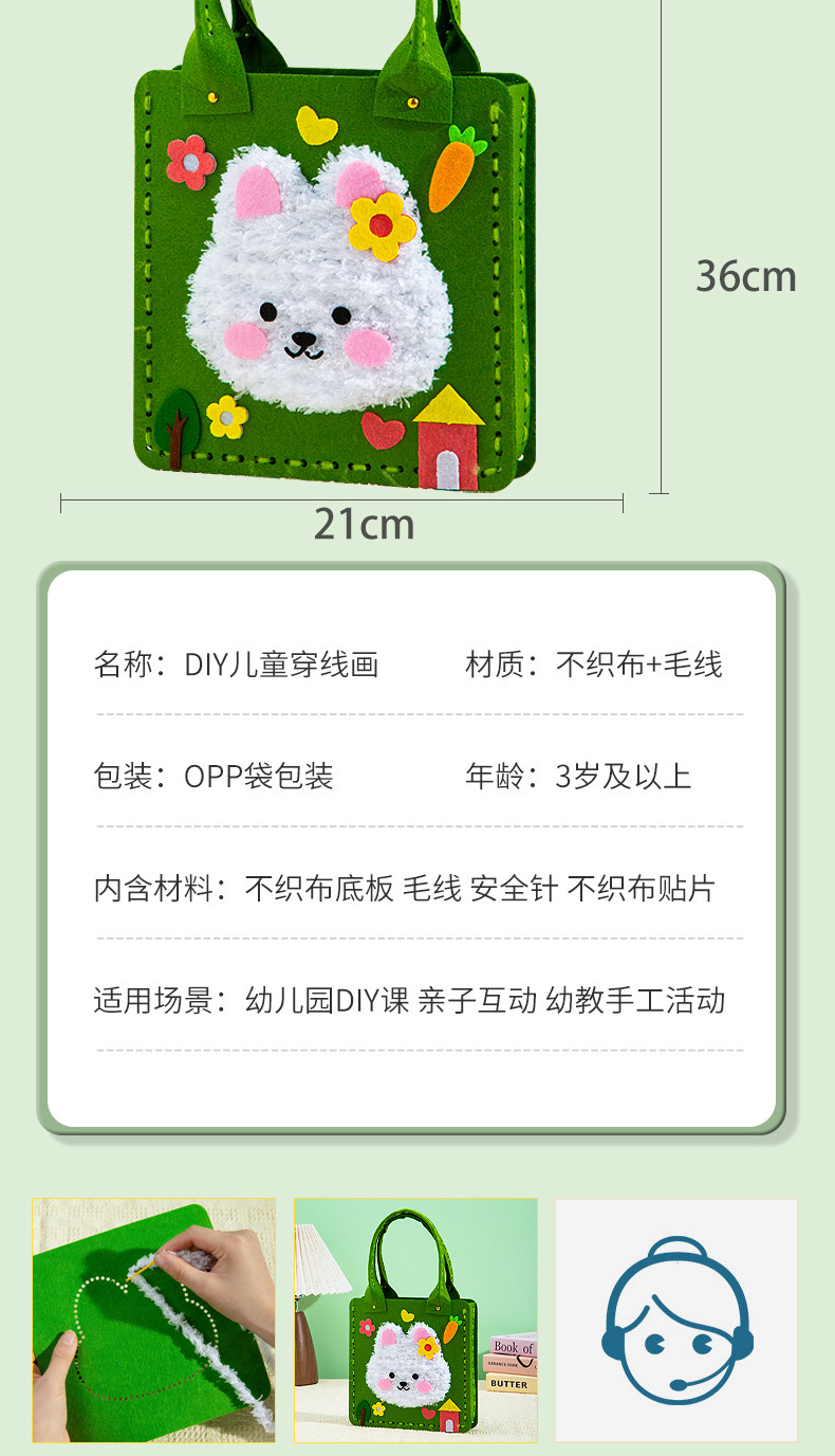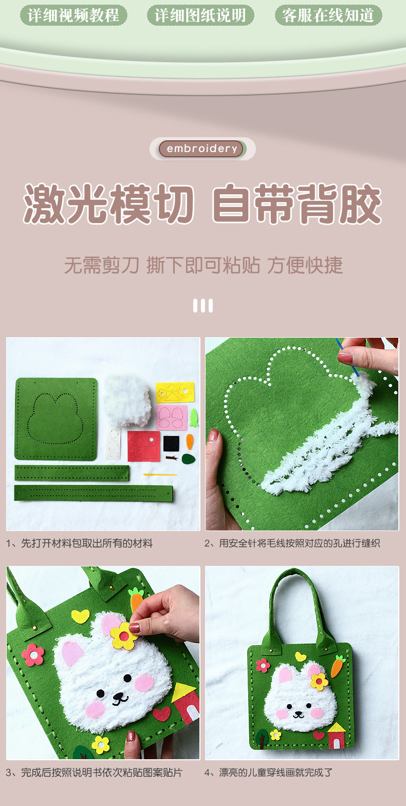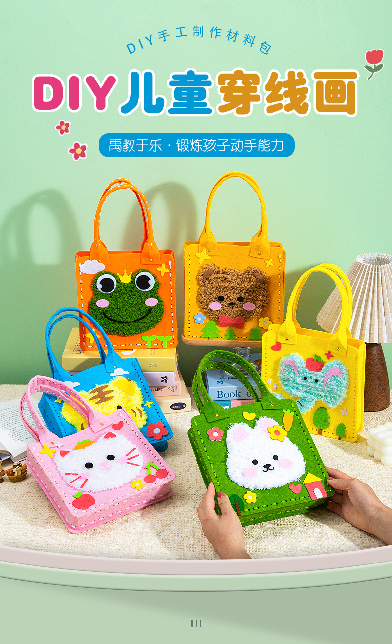 不织布缝缝乐手工包包diy材料幼儿园创意礼物儿童卡通益智玩具