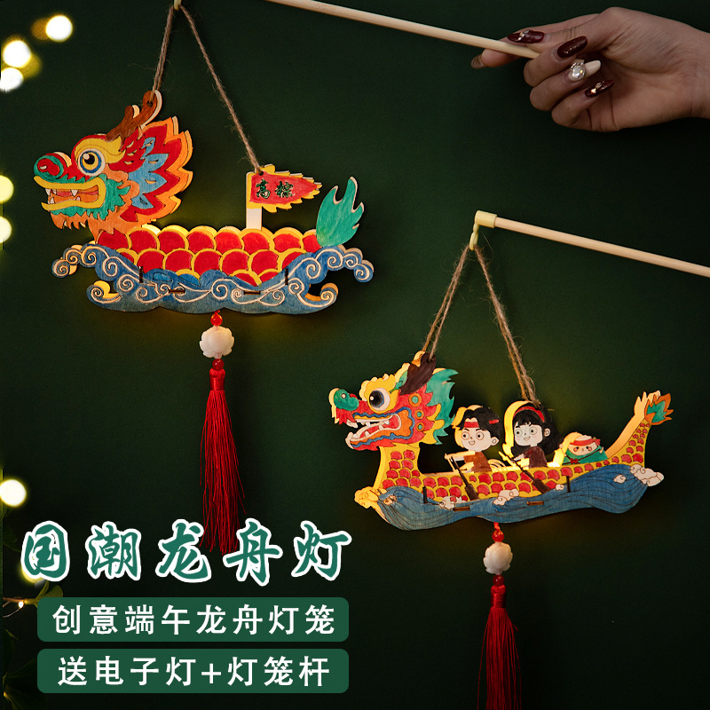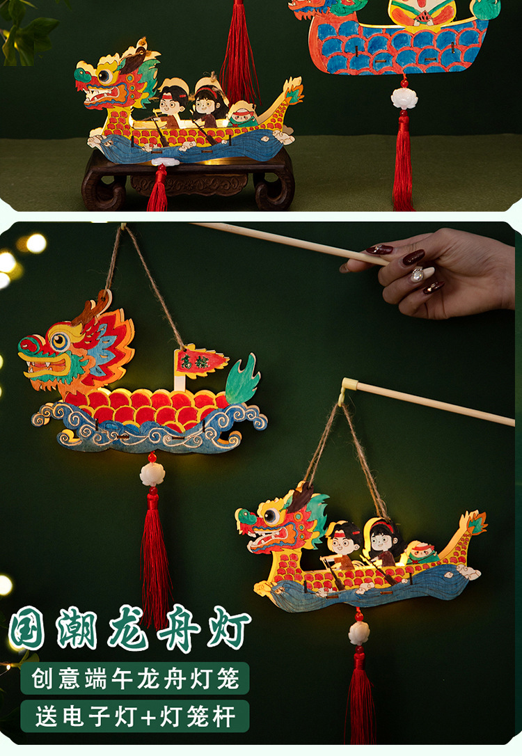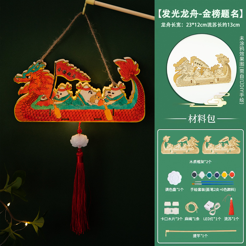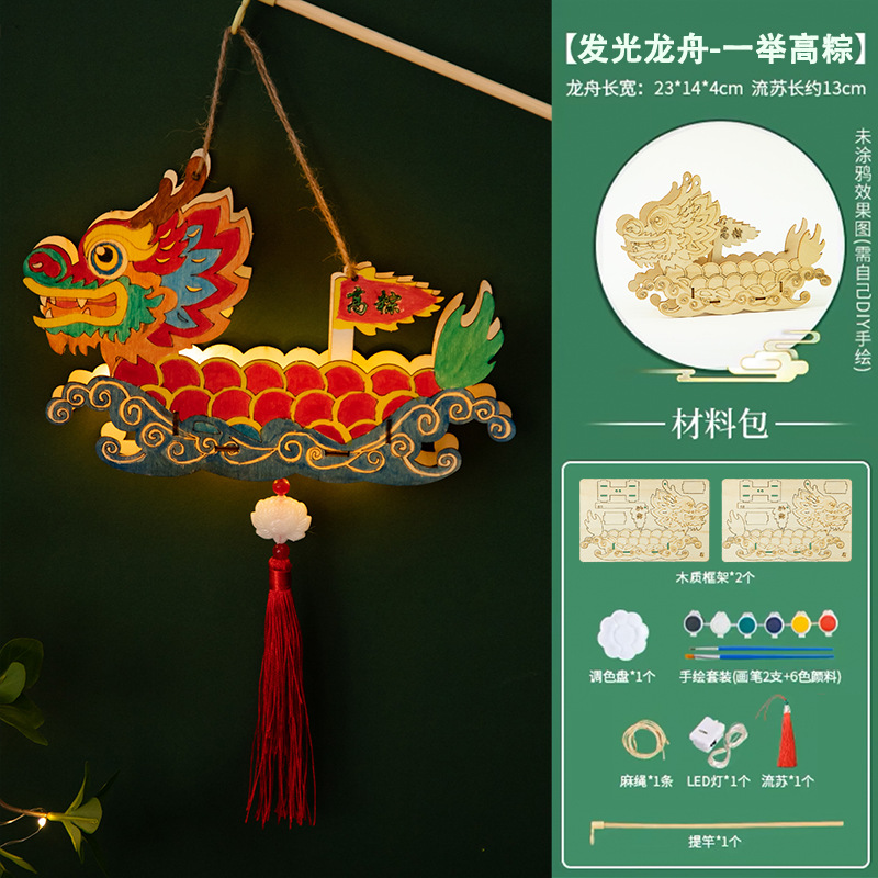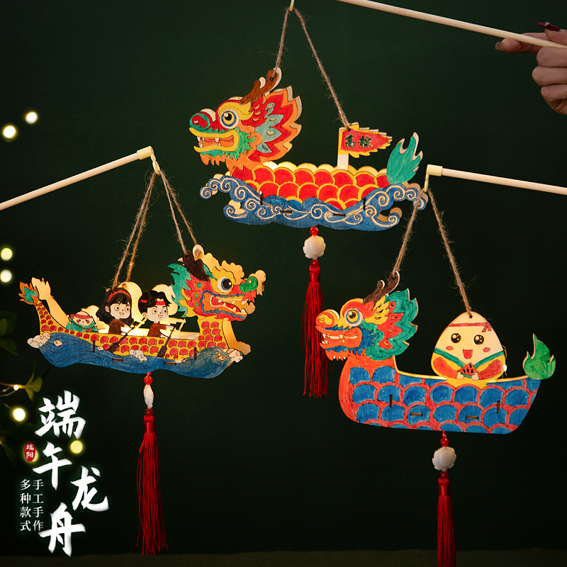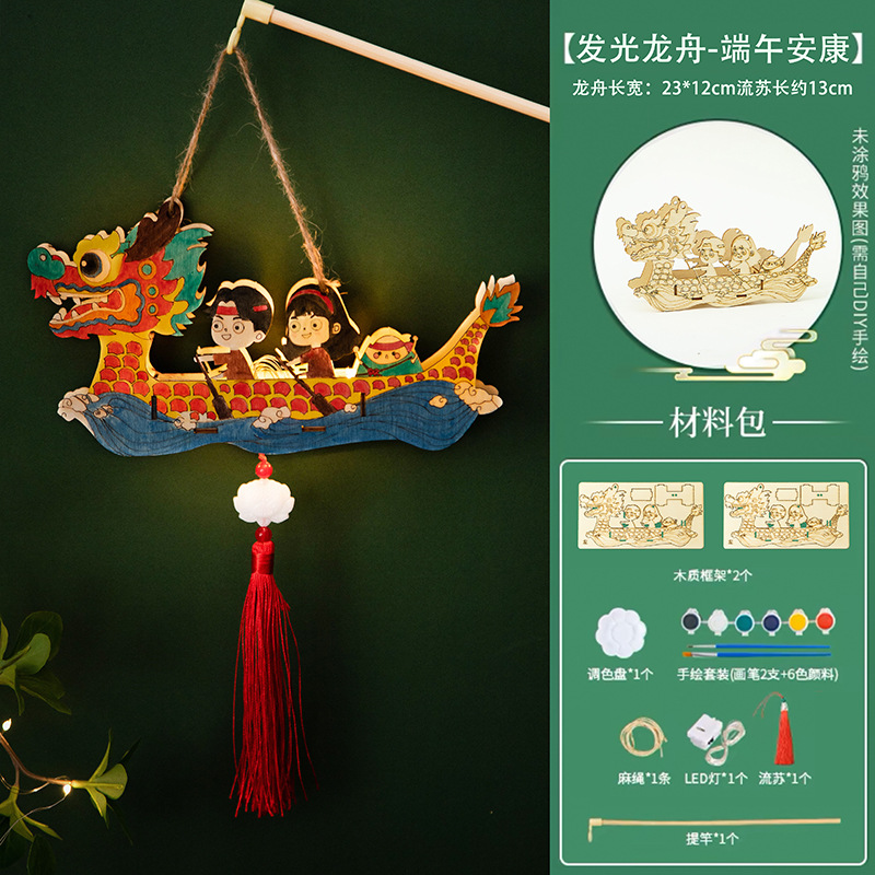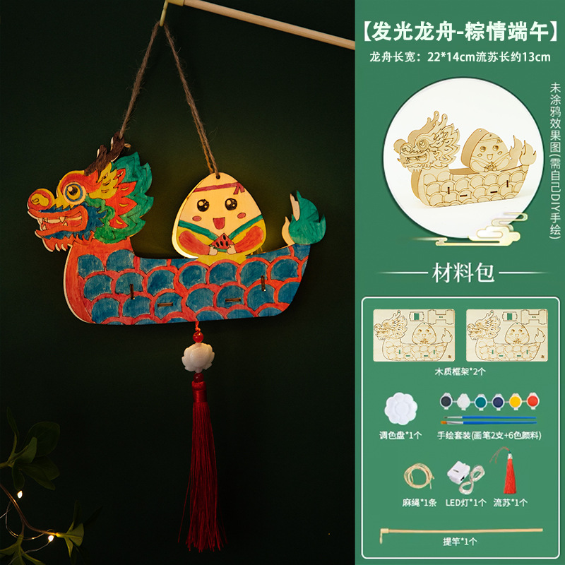 定制端午节diy手工材料包幼儿园儿童礼物涂鸦画手提龙舟灯笼