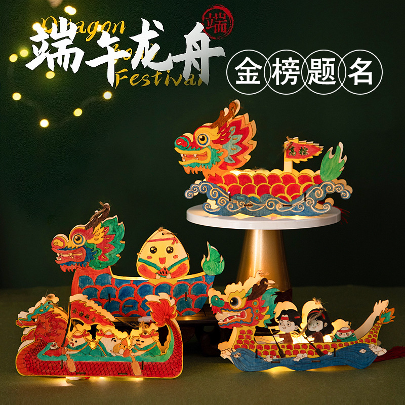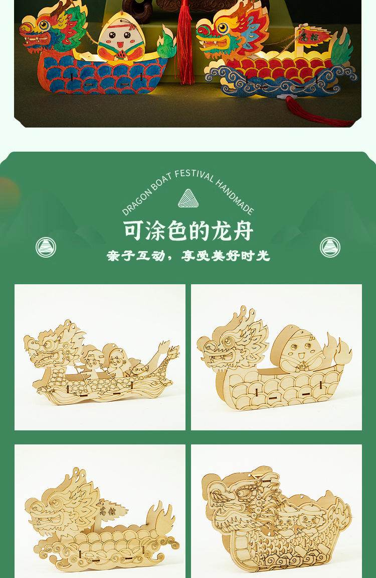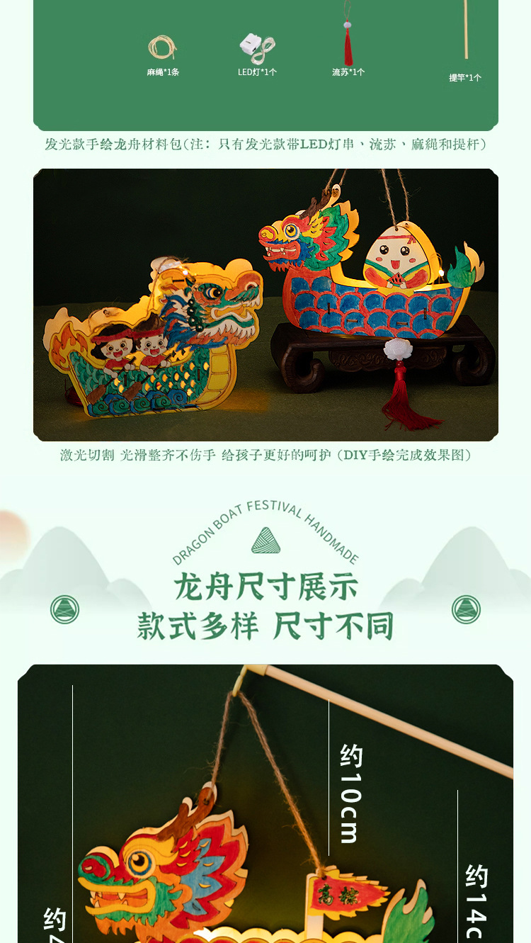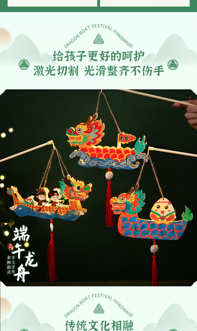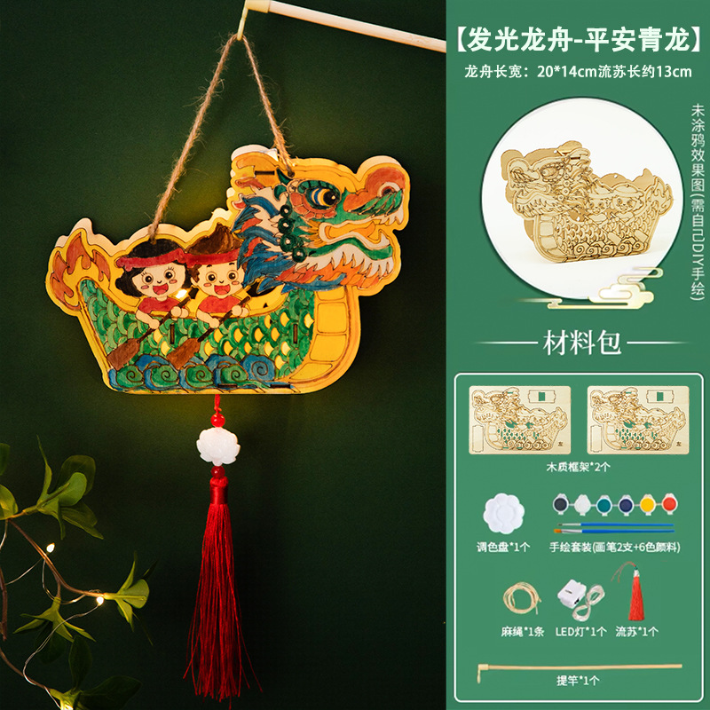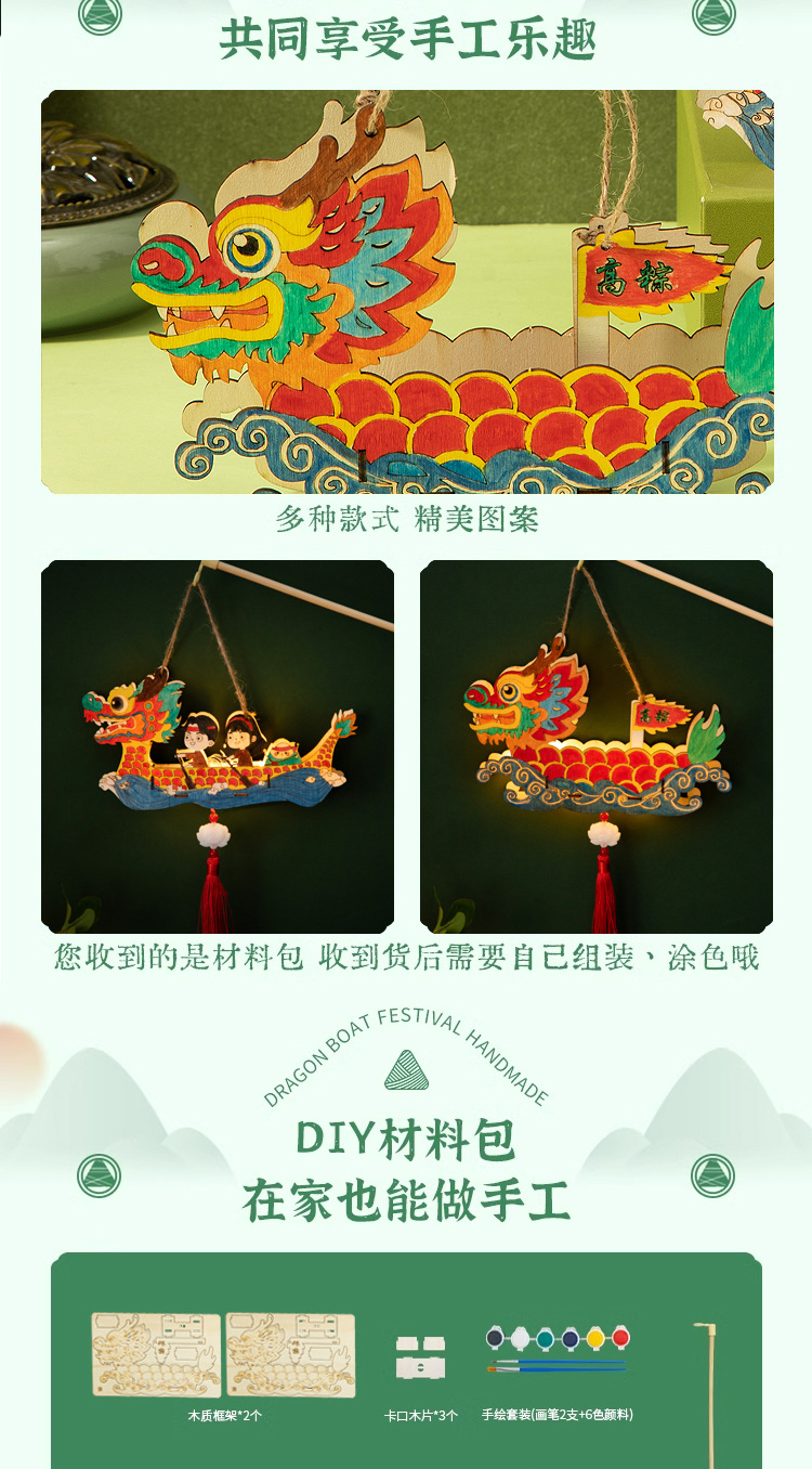 定制端午节diy手工材料包幼儿园儿童礼物涂鸦画手提龙舟灯笼